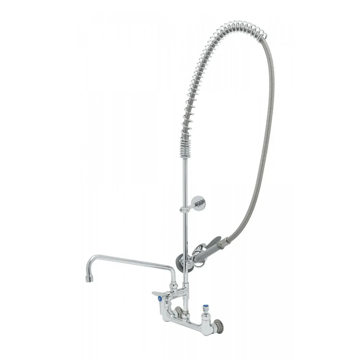 Maintain Operational Safety with the T&S Brass B-0133-01-CR Pre-Rinse Faucet Assembly. Designed specifically for commercial restaurant use, this easy-to-install pre-rinse faucet ensures efficient and hygienic dishwashing operations. The 8" wall mount mixing faucet features a polished chrome plated brass body, providing durability and a sleek appearance. The add-on faucet, also with a polished chrome plated brass body, offers additional functionality and convenience. With a 14" swing nozzle and a stream regulator outlet, this pre-rinse faucet assembly allows for precise control and optimal water flow. The Ceramas coating enhances the longevity of the faucet, making it resistant to corrosion and wear. Upgrade your restaurant's dishwashing station with the T&S Brass B-0133-01-CR Pre-Rinse Faucet Assembly and experience improved efficiency and safety.