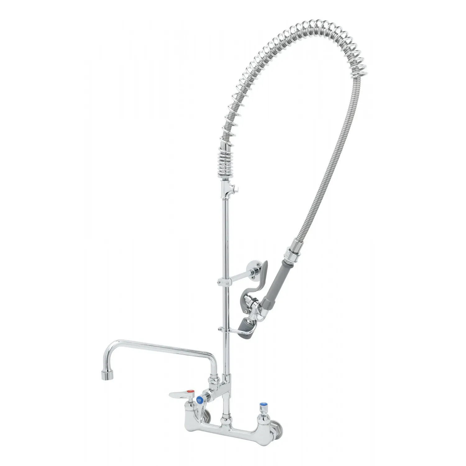 Enhance Operational Safety with the T&S Brass B-0133-12ACBJST Pre-Rinse Faucet Assembly, with Add On Faucet. This commercial-grade faucet is designed to meet the rigorous demands of a busy restaurant kitchen. The 8" wall mount mixing faucet features a polished chrome plated brass body, ensuring durability and longevity. The easy-install add-on faucet also boasts a polished chrome plated brass body, making it a reliable and convenient addition to any kitchen setup. The 12" swing nozzle with a 2.2 GPM VR aerator provides excellent water flow and efficiency, allowing for quick and thorough rinsing. With its Series 6 (B-0199-06) compatibility, this pre-rinse faucet assembly offers versatility and ease of use. Trust T&S Brass, a reputable vendor known for their quality products, to enhance the safety and efficiency of your restaurant operations.