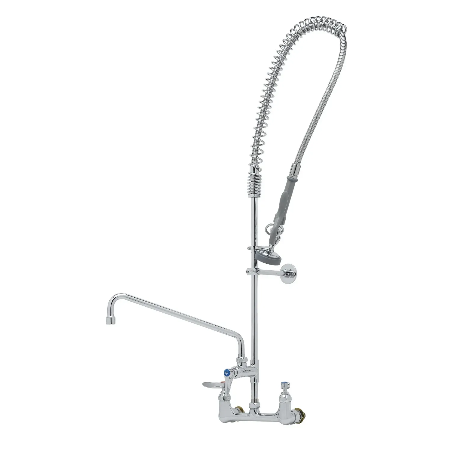 Improve system reliability with the T&S Brass B-0133-A14-CCB Pre-Rinse Faucet Assembly with Add On Faucet. This easy-install pre-rinse unit is designed for commercial restaurant use, offering a convenient and efficient solution for your kitchen needs. The 8" wall mount mixing faucet features a polished chrome plated brass body, ensuring durability and longevity in a high-demand environment. The add-on faucet also boasts a polished chrome plated brass body, providing a seamless and stylish addition to your setup. With a 14" swing nozzle and stream regulator outlet, this pre-rinse faucet assembly offers versatility and precision for all your cleaning tasks. Whether you're rinsing dishes, washing produce, or cleaning countertops, this T&S Brass assembly is the perfect choice. Trust in the reliability and quality of T&S Brass to enhance your restaurant's efficiency and productivity.