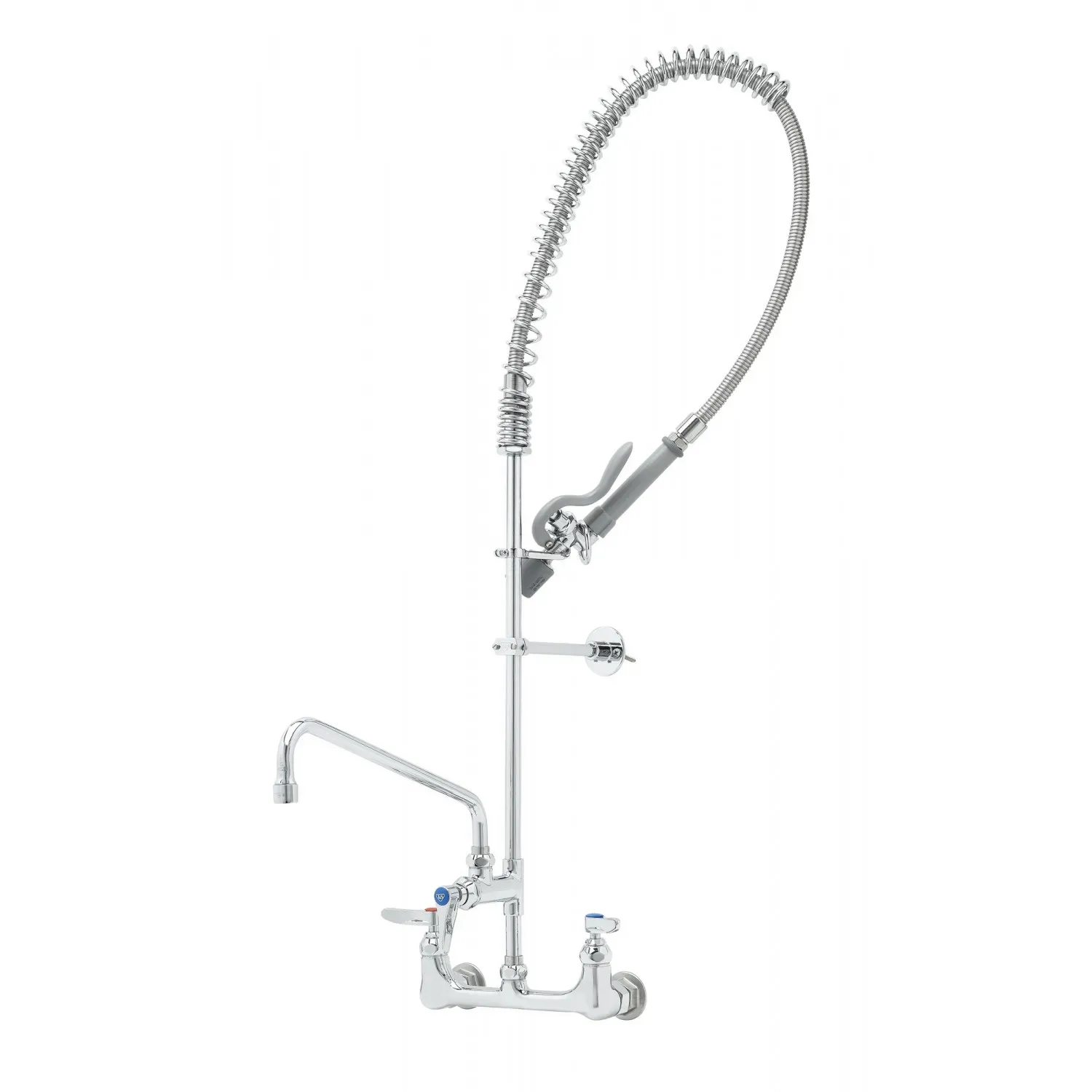 Maximize system performance with the T&S Brass B-0133-ADF12-BC Pre-Rinse Faucet Assembly. Designed specifically for commercial restaurant use, this pre-rinse unit is a must-have for any busy kitchen. The 8" wall mount allows for easy installation and the 12" swing nozzle provides flexibility and convenience. With the included add-on faucet, you can easily switch between pre-rinsing and regular washing tasks. The B-0107-C wall bracket ensures stability and durability, even in high-pressure environments. This pre-rinse faucet assembly is built to withstand the demands of a commercial kitchen, with a pressure range of 20 - 125 psi and a temperature range of 40°F - 140°F. Upgrade your restaurant's kitchen with the T&S Brass B-0133-ADF12-BC Pre-Rinse Faucet Assembly and experience the difference in efficiency and convenience.