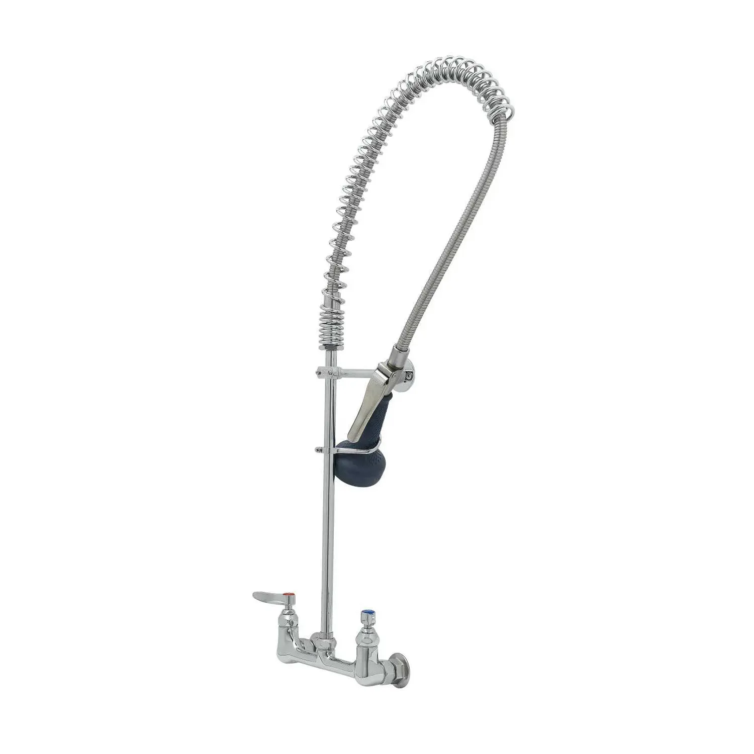 Maximize System Performance with the T&S Brass, B-0133-B08C Pre-Rinse Faucet Assembly. This easy-to-install 8" wall mount faucet is designed specifically for commercial restaurant use. With its polished chrome plated brass body, it not only adds a touch of elegance to your kitchen but also ensures durability and longevity. The B-0108-C spray valve provides a powerful and efficient spray pattern, making it perfect for pre-rinsing dishes and utensils. The 1/2" NPT female inlets allow for easy connection to your existing plumbing system. The EasyInstall 18" riser ensures quick and hassle-free installation, while the 44" flexible stainless steel hose provides ample reach and maneuverability. Whether you're running a busy restaurant or a bustling cafe, this pre-rinse faucet assembly from T&S Brass is a must-have for maximizing efficiency and performance in your commercial kitchen.
