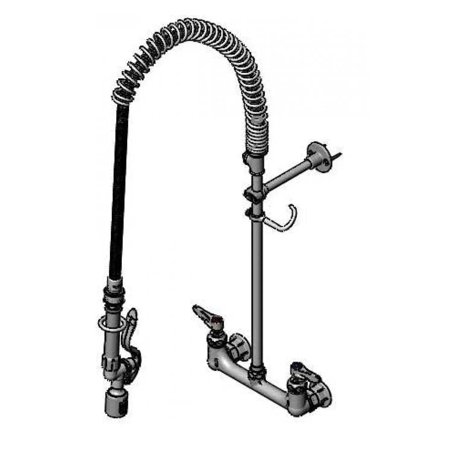 Maintain Operational Safety with the T&S Brass, B-0133-BJ-SWV-T Pre-Rinse Faucet Assembly. This easy-to-install pre-rinse faucet is designed specifically for commercial restaurant use, ensuring optimal performance and durability. The 8" wall mount base and wall bracket provide a secure and stable installation, while the polished chrome plated brass body adds a sleek and professional look to any kitchen. The EasyInstall 18" riser makes installation a breeze, saving you time and effort. With a 44" flexible stainless steel hose, heat resistant gray handle, and hold down ring, this pre-rinse faucet offers maximum flexibility and convenience. The swivel feature allows for easy maneuverability, making it effortless to reach all corners of your sink. Trust T&S Brass, a reputable vendor known for their high-quality products, to deliver a pre-rinse faucet assembly that meets your restaurant's operational needs.