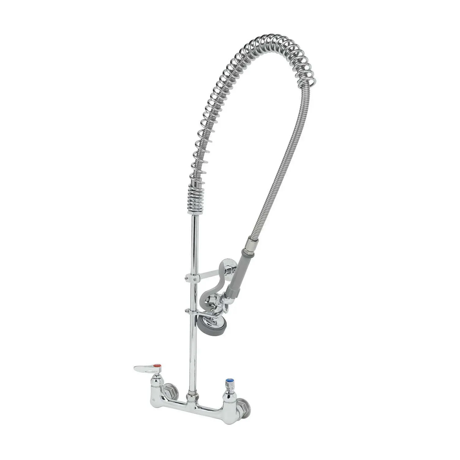 Enhance System Durability with the T&S Brass, B-0133-CCB, Pre-Rinse Faucet Assembly. This easy-to-install, wall-mounted pre-rinse faucet is designed specifically for commercial restaurant use. With its 8" center-to-center measurement and 1/2" NPT male inlets, it provides a reliable and efficient solution for your kitchen needs. The polished chrome plated brass body ensures durability and longevity, even in high-traffic environments. The EasyInstall 18" riser allows for quick and hassle-free installation, saving you time and effort. The 44" flexible stainless steel hose, complete with a heat-resistant gray handle and hold down ring, provides flexibility and ease of use. Whether you're rinsing dishes, cleaning produce, or washing down surfaces, this pre-rinse faucet assembly is a must-have for any commercial restaurant. Trust T&S Brass, a reputable vendor known for their quality and reliability. Upgrade your kitchen with the T&S Brass, B-0133-CCB, Pre-Rinse Faucet Assembly today.