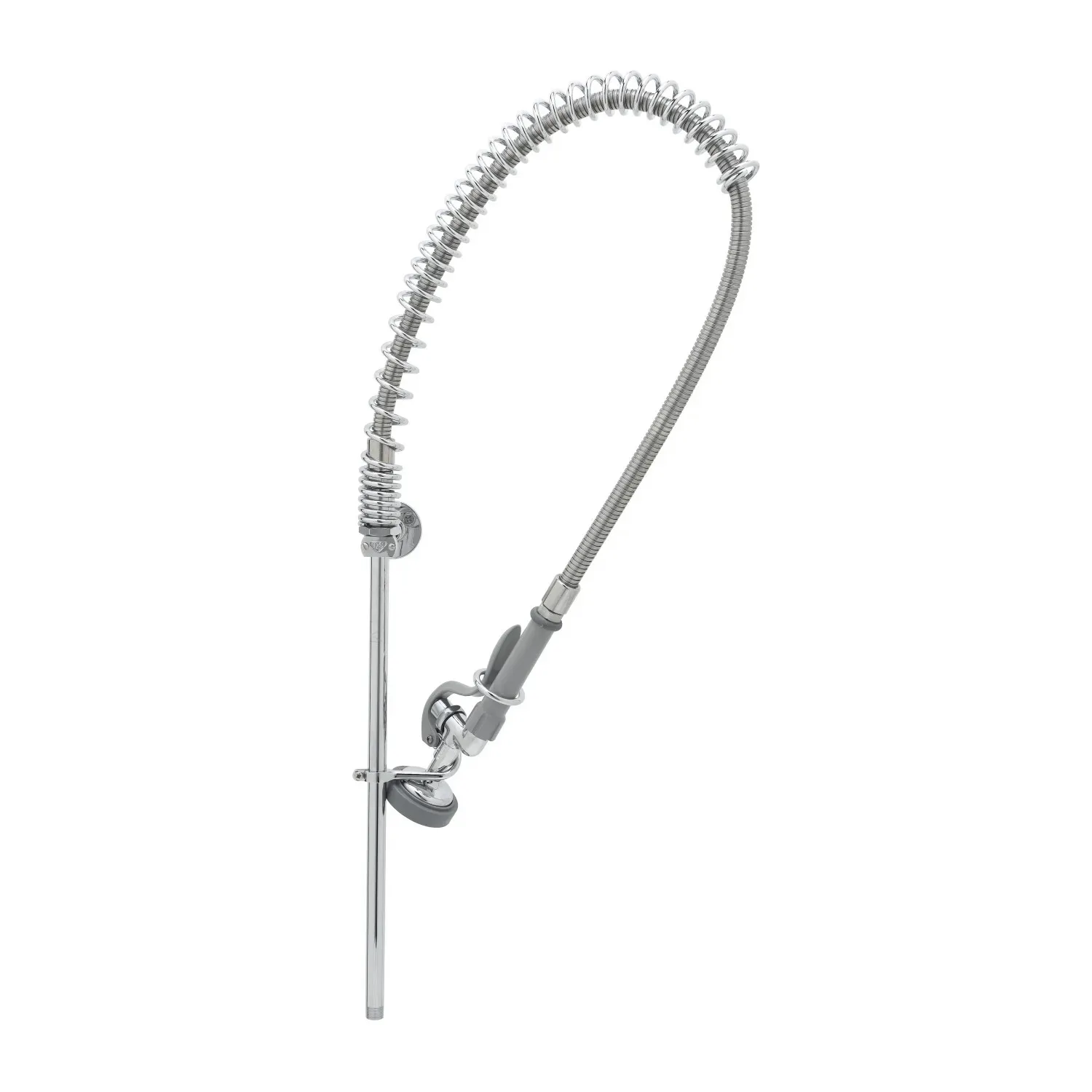 Maximize System Integrity with the T&S Brass B-0133-LB Pre-Rinse Add On Faucet. Designed specifically for commercial restaurant use, this pre-rinse unit ensures efficient and thorough cleaning of dishes, pots, and pans. The 18" rigid riser and 44" flexible stainless steel hose provide ample reach and maneuverability, allowing you to easily clean hard-to-reach areas. Equipped with a heat-resistant gray handle and hold down ring, this pre-rinse unit offers comfort and stability during use. The included B-0107 spray valve delivers a powerful 1.15 GPM spray, effectively removing stubborn food particles and grease. With its durable construction and reliable performance, this pre-rinse add on faucet is built to withstand the demands of a busy commercial kitchen. Trust T&S Brass, a reputable vendor known for their quality products, to enhance the efficiency and cleanliness of your restaurant's dishwashing process.