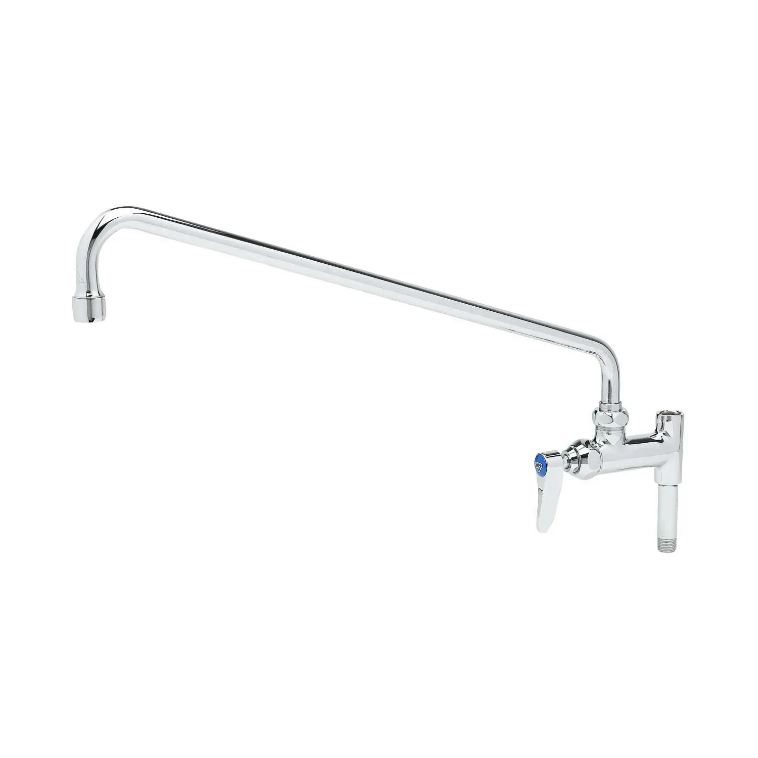 Optimize Equipment Use with T&S Brass, B-0157, Pre-Rinse, Add On Faucet. This high-quality faucet from T&S Brass is designed to enhance the efficiency and functionality of your commercial restaurant. With its polished chrome plated brass body, this add-on faucet not only adds a touch of elegance to your kitchen but also ensures durability and longevity. The 18" swing nozzle provides flexibility and convenience, allowing you to easily reach different areas of your sink. The 3/8" NPT female outlet ensures a steady and powerful water flow, making it perfect for pre-rinsing dishes and utensils. Whether you're running a busy restaurant or a bustling cafe, this T&S Brass faucet is a must-have for any commercial kitchen. Trust in the reliability and performance of T&S Brass to optimize your equipment use and streamline your restaurant operations.