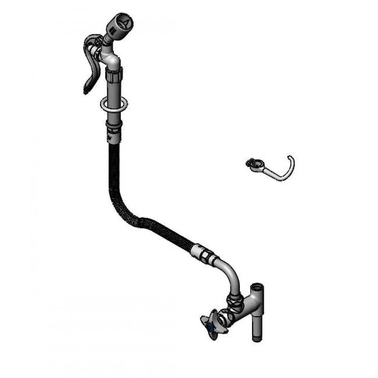 Ensure system integrity with the T&S Brass B-0165-C35-GGB Pre-Rinse Add-On Faucet. Designed specifically for commercial restaurant use, this washdown hose unit is a must-have for any busy kitchen. With its polished chrome plated brass body, it not only adds a touch of elegance but also ensures durability and longevity. The 68" flexible stainless steel hose with a heat-resistant gray handle and hold-down ring provides maximum maneuverability and ease of use. The 0.65 GPM spray valve delivers a powerful and efficient spray, perfect for rinsing dishes and cleaning surfaces. The finger hook allows for convenient storage when not in use. With its 90 swivel adapter arm, this add-on faucet offers flexibility and versatility in any kitchen setup. Trust T&S Brass, a reputable vendor known for their high-quality products, to deliver exceptional performance and reliability. Upgrade your restaurant's pre-rinse system with the T&S Brass B-0165-C35-GGB Pre-Rinse Add-On Faucet.