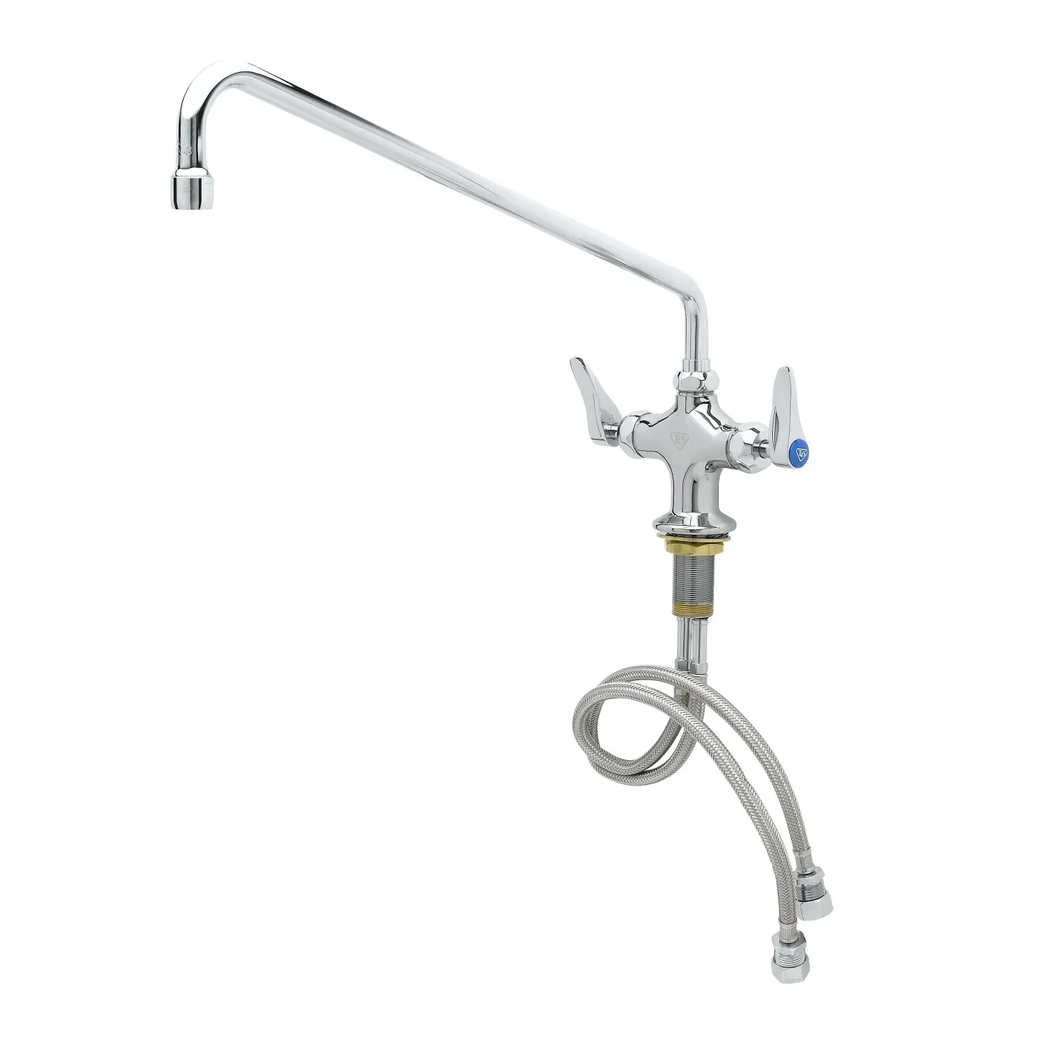 Facilitate Equipment Use with the T&S Brass, B-0200-CR, Faucet, Pantry. This double pantry faucet is designed to enhance efficiency in commercial restaurant settings. With its single hole base and ceramas construction, this faucet offers durability and ease of use. The 18" swing nozzle provides flexibility and convenience, allowing for easy access to different areas of the sink. The polished chrome plated brass body not only adds a sleek and professional look to your kitchen but also ensures long-lasting performance. The lock washer provided allows for rigid application, ensuring stability during heavy use. Whether you're washing dishes, filling pots, or cleaning produce, this pantry faucet is a reliable and efficient choice. Trust T&S Brass, a reputable vendor in the industry, to deliver a high-quality product that meets the demands of your busy restaurant kitchen.