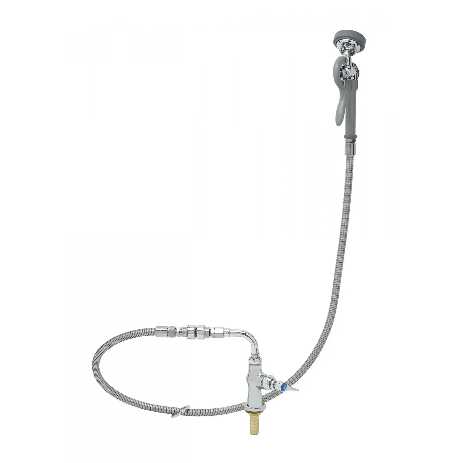 Ensure smooth operation with the T&S Brass B-0205-60H-VB Faucet with Spray Hose. Designed specifically for commercial restaurant use, this single hole single temperature deck mount faucet is a reliable choice for any busy kitchen. The polished chrome plated brass body not only adds a touch of elegance but also ensures durability and longevity. The 90 swivel adapter allows for easy maneuverability, while the 3/8" NPT vacuum breaker prevents backflow and contamination. With its user-friendly design and high-quality construction, this faucet is built to withstand the demands of a bustling restaurant environment. Whether you're washing dishes or filling pots, the T&S Brass B-0205-60H-VB Faucet with Spray Hose is the perfect choice for efficient and hygienic operation. Trust in T&S Brass, a reputable vendor known for their exceptional products.