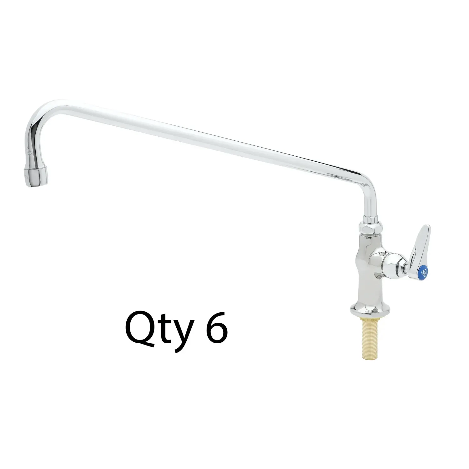 Enhance System Performance with T&S Brass, B-0205-M, Manual Faucets. This single pantry faucet is designed for commercial restaurant use, offering exceptional functionality and durability. With a single hole base and deck mount design, it provides easy installation and a sleek appearance. The 18" swing nozzle (065X) allows for flexible and precise water flow control, making it ideal for various kitchen tasks. The faucet comes in a convenient master pack of 6, ensuring you have an ample supply for your restaurant's needs. T&S Brass, a trusted vendor in the industry, has packed this faucet with attention to detail and quality. Its sturdy construction and reliable performance make it a valuable addition to any commercial kitchen. Upgrade your restaurant's plumbing system with the T&S Brass B-0205-M manual faucet and experience enhanced efficiency and productivity.