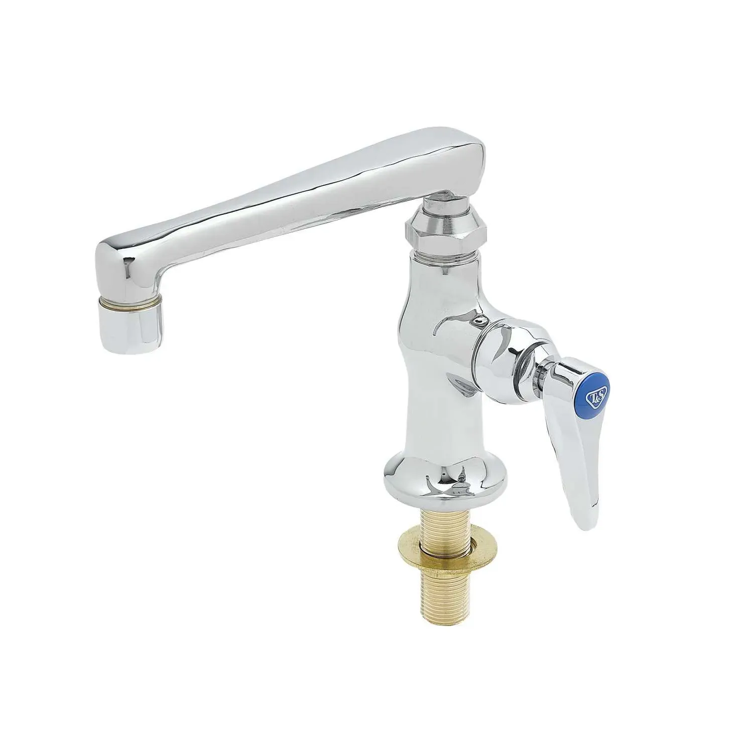 Maintain Equipment Functionality with the T&S Brass B-0208 Pantry Faucet. Designed specifically for commercial restaurant use, this single hole deck mount faucet ensures reliable performance and durability. The polished chrome plated brass body not only adds a sleek and professional look to your kitchen, but also provides long-lasting resistance against corrosion and wear. The 6" cast spout (OSC6) allows for easy filling of pots and pans, while the 2.2 gpm aerator ensures a steady and efficient water flow. With a lock washer provided for rigid application, you can trust that this faucet will stay securely in place, even during heavy use. Whether you're washing dishes, filling containers, or rinsing produce, the T&S Brass B-0208 Pantry Faucet is the perfect choice to maintain the functionality of your restaurant equipment.