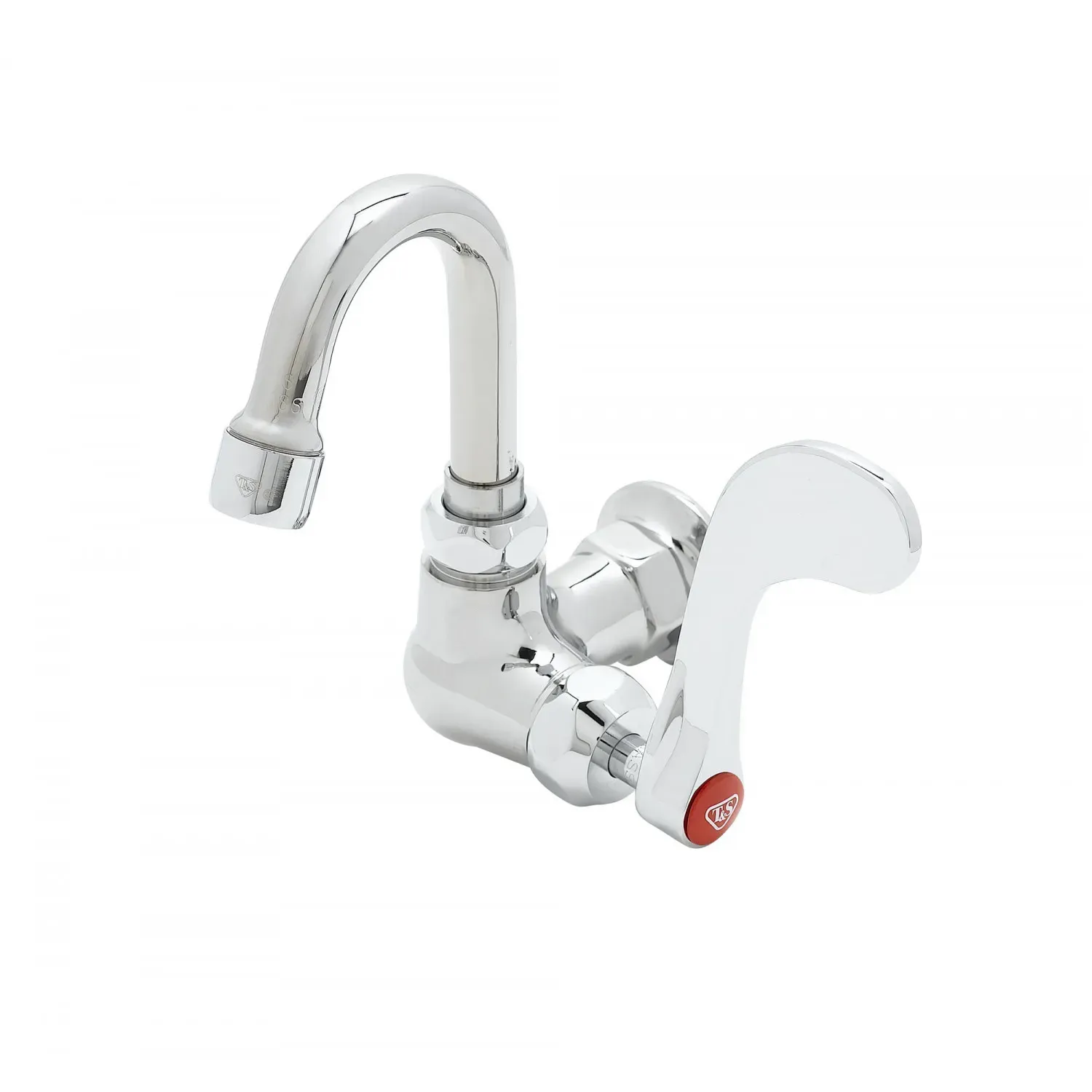 Facilitate Effective Maintenance with T&S Brass, B-0210-131X-CR4, Faucet, Wall / Splash Mount. This single pantry faucet is designed to meet the demands of a busy commercial restaurant. With its wall mount feature, it saves valuable counter space, allowing for a more efficient workflow. The 4" wrist-action handle provides easy control and precise temperature adjustment, ensuring consistent results in food preparation. The swivel gooseneck allows for flexibility and convenience, making it easier to fill large pots and containers. Made with a polished chrome plated brass body, this faucet is not only durable but also adds a touch of elegance to any kitchen. The lock washer provided ensures a secure and rigid application, preventing leaks and minimizing maintenance. With T&S Brass, you can trust in the quality and reliability of their products, making this faucet a must-have for any commercial restaurant.