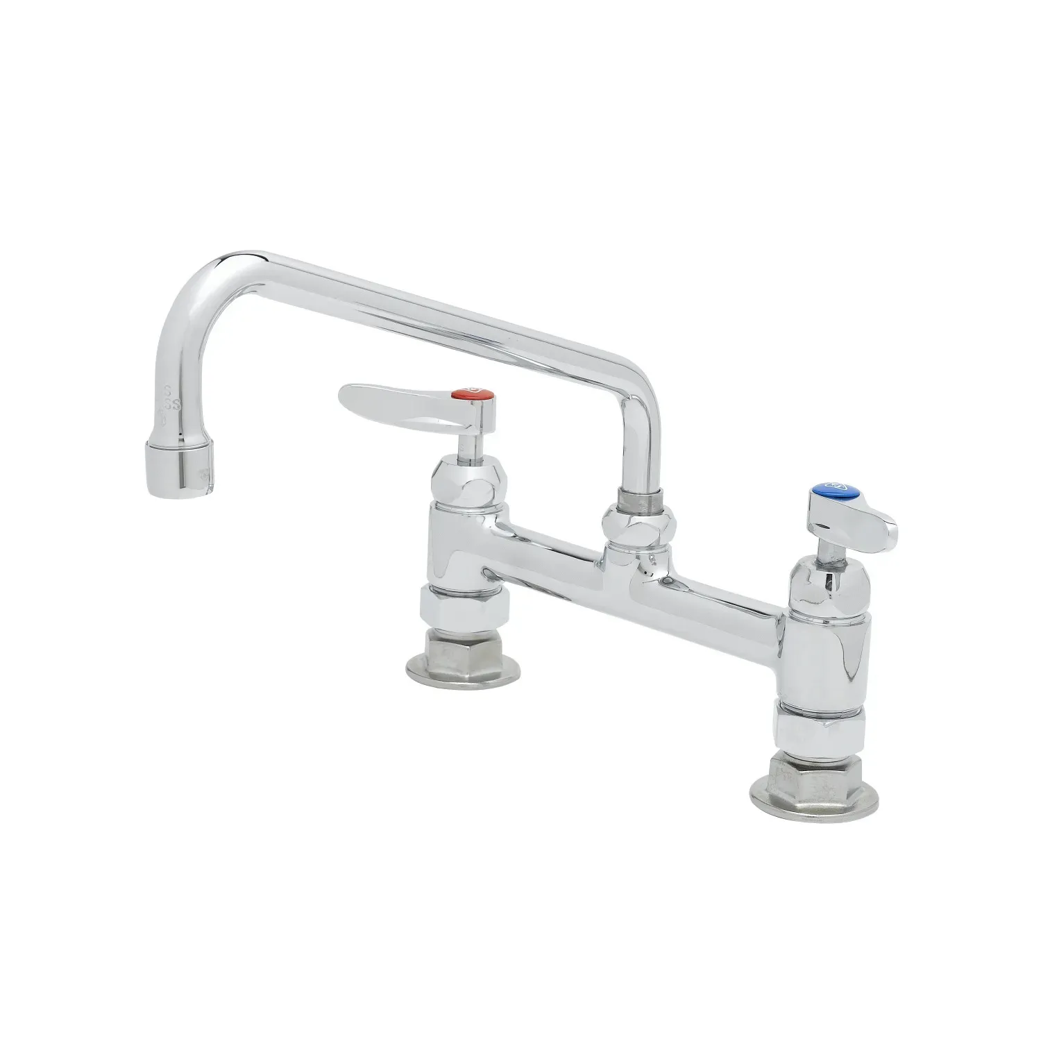 Optimize Usage Efficiency with the T&S Brass, B-0220-061XCRF1, Faucet, Deck Mount. This 8" deck mount faucet is designed to enhance the functionality of your commercial restaurant kitchen. With its Ceramas construction and polished chrome plated brass body, this faucet is not only durable but also adds a touch of elegance to your space. The 10" swing nozzle allows for easy maneuverability, making it convenient to fill large pots and pans. The lever handles provide precise control over water flow and temperature, ensuring efficient usage. The 1.0 GPM aerator helps conserve water without compromising performance. This faucet comes with a lock washer for rigid application, ensuring stability during heavy use. Trust T&S Brass, a reputable vendor known for their quality products, to deliver a reliable and efficient faucet that meets the demands of a busy commercial restaurant kitchen.