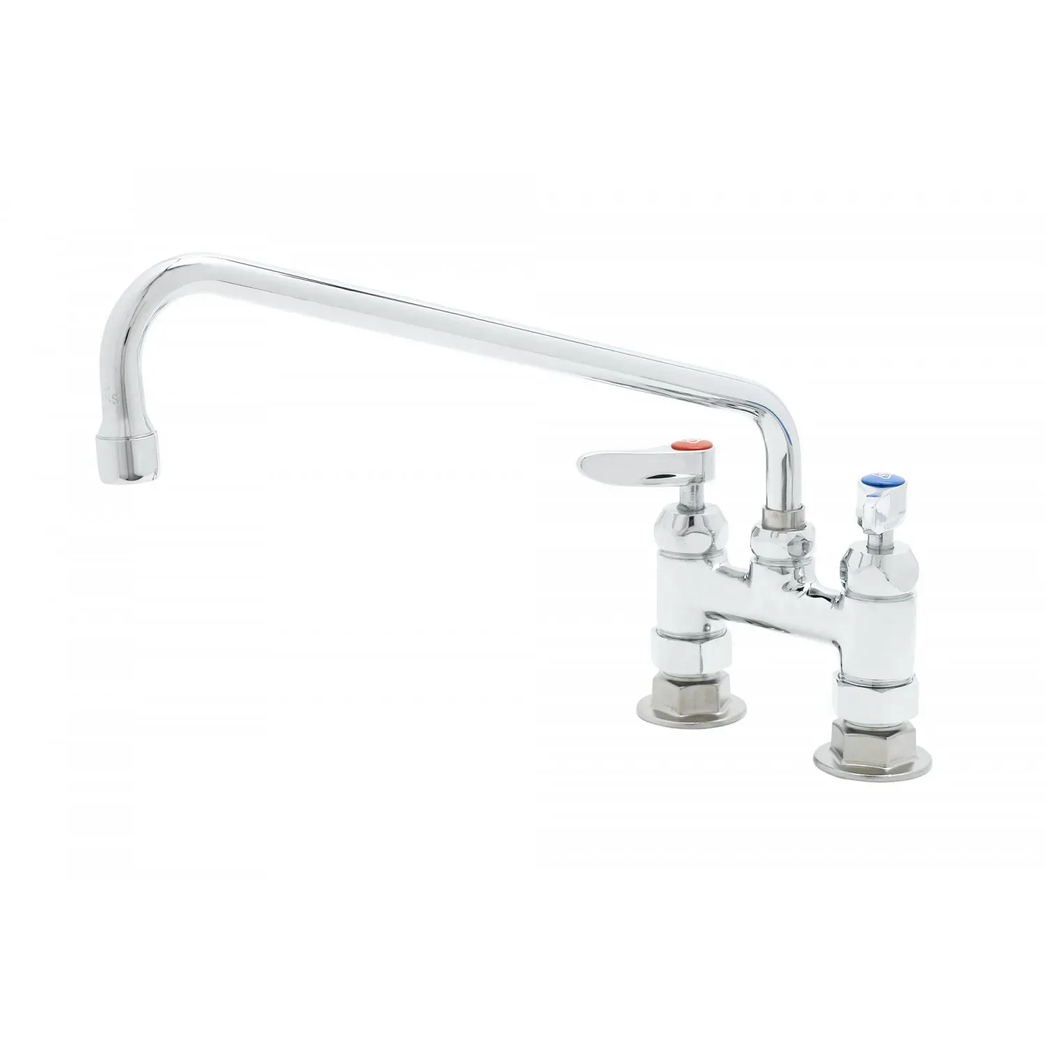 Facilitate Easy Maintenance with the T&S Brass B-0225-CR-K-F10 Deck Mount Faucet. This commercial-grade faucet is designed to meet the rigorous demands of a busy restaurant kitchen. With its 4" deck mount and polished chrome plated brass body, it offers both durability and style. The 12" swing nozzle provides flexibility and convenience, allowing for easy filling of pots and pans. The 1.0 GPM aerator ensures efficient water flow while conserving water, making it an eco-friendly choice. The lever handles offer easy operation, even in the busiest of kitchens. This faucet is part of the Series 1 collection, known for its reliability and performance. Whether you're washing dishes or filling up buckets, the T&S Brass B-0225-CR-K-F10 Deck Mount Faucet is the perfect choice for any commercial restaurant.