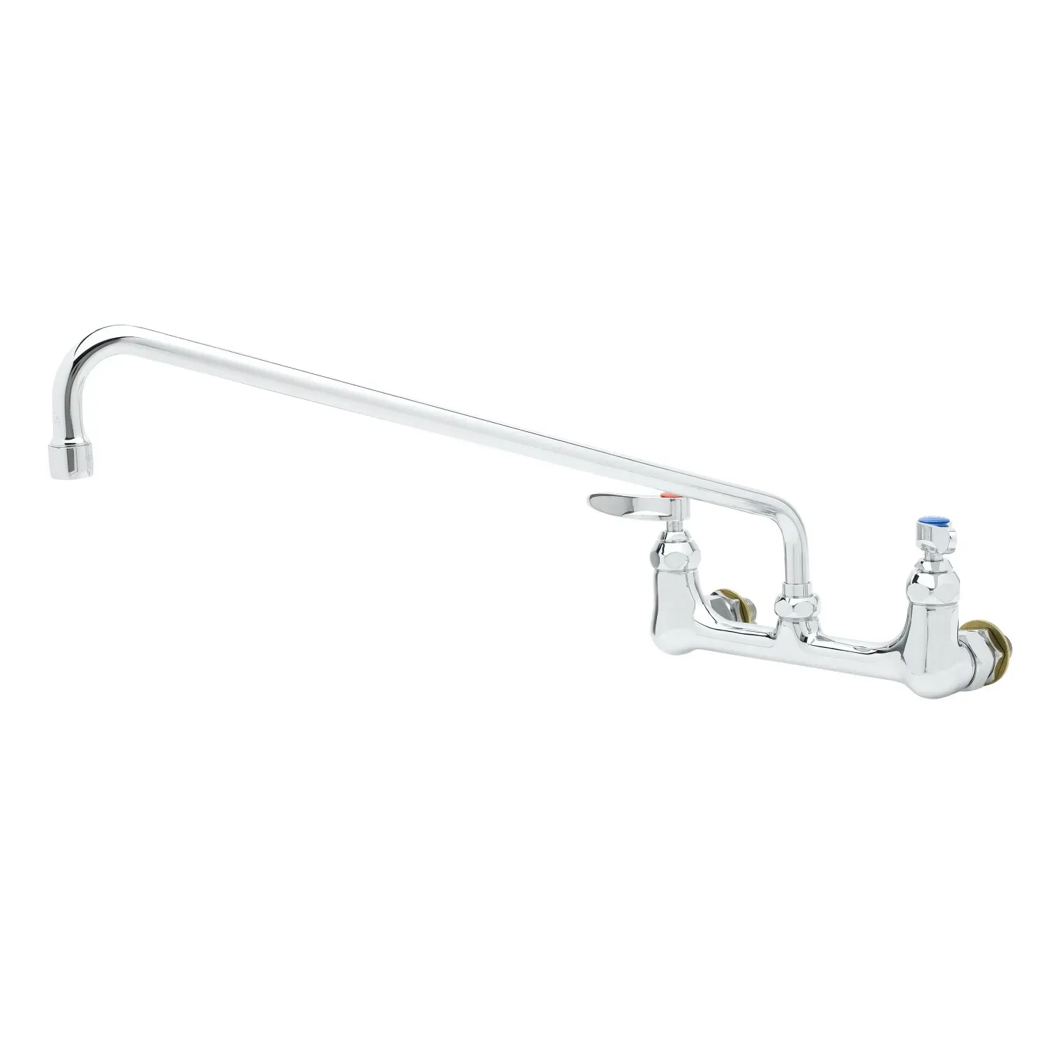 Enhance Operational Safety with the T&S Brass B-0230-CC Faucet, Wall / Splash Mount. This double pantry faucet is designed specifically for commercial restaurant use, ensuring optimal functionality and durability. With its 8" centers and 18" swing nozzle, this faucet provides convenient access to water for various tasks in the kitchen. The polished chrome plated brass body not only adds a sleek and professional look to your restaurant, but it also ensures long-lasting performance. The 1/2" NPT male inlet allows for easy installation and compatibility with existing plumbing systems. Additionally, the lock washer provided ensures a rigid application, enhancing operational safety. Trust T&S Brass, a reputable vendor in the industry, to deliver high-quality products that meet the demands of a busy commercial kitchen. Upgrade your restaurant's plumbing system with the T&S Brass B-0230-CC Faucet, Wall / Splash Mount.