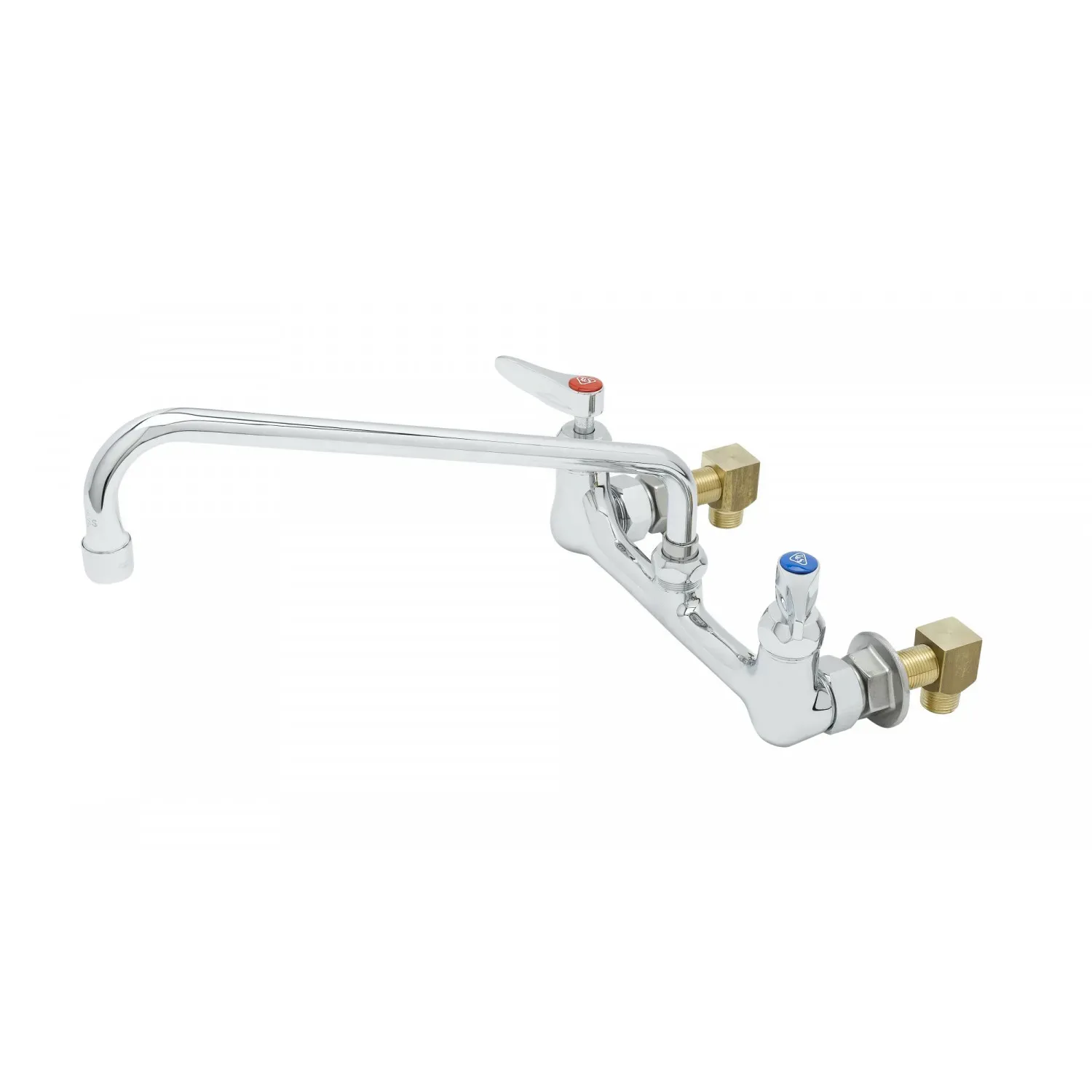 Secure Equipment Functionality with the T&S Brass B-0230-CR-SC-EK Faucet, Wall/Splash Mount. This high-quality faucet is designed to meet the demands of a commercial restaurant setting, ensuring reliable performance and durability. The polished chrome plated brass body not only adds a sleek and professional look to your establishment but also provides long-lasting resistance against corrosion and wear. The 18" swing nozzle allows for easy maneuverability, making it convenient to fill large pots and pans or rinse out sinks. With the included lock washer, you can securely install this faucet for rigid application, ensuring stability and preventing leaks. Whether you're washing dishes, filling containers, or cleaning up, the T&S Brass B-0230-CR-SC-EK Faucet is the perfect choice for any commercial kitchen. Trust in its quality and enjoy the convenience it brings to your restaurant operations.