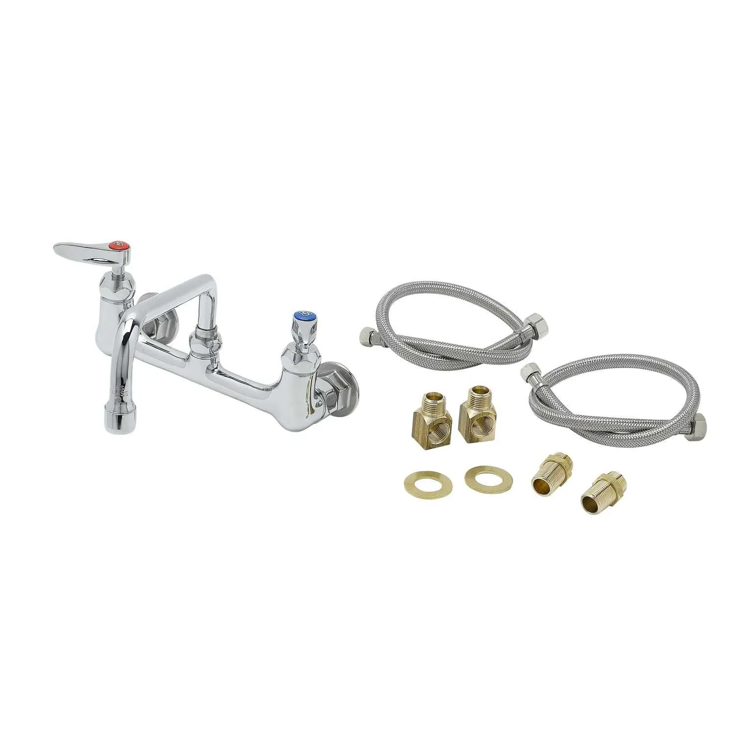 Enhance Equipment Performance with the T&S Brass, B-0231-CR-KIT, Faucet, Wall / Splash Mount. This 8" wall mount base faucet is designed to optimize functionality in commercial restaurant settings. With 1/2"NPT male inlets and ceramic cartridges, this faucet ensures reliable and long-lasting performance, even in high-demand environments. The 12" swing nozzle provides flexibility and convenience, allowing for easy filling of large pots and pans. The polished chrome plated brass body not only adds a sleek and professional look to your kitchen but also ensures durability and resistance to corrosion. The lock washer provided allows for rigid application, ensuring stability during use. Upgrade your restaurant's equipment with the T&S Brass, B-0231-CR-KIT, Faucet, Wall / Splash Mount and experience enhanced performance and efficiency.