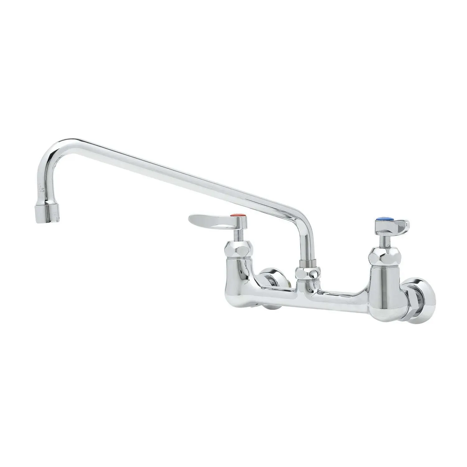 Enhance System Functionality with the T&S Brass B-0231-EE-A22CR Faucet, Wall / Splash Mount. This double pantry faucet is designed specifically for commercial restaurant use, offering exceptional performance and durability. The 8" wall mount design ensures easy installation and saves valuable counter space. With its polished chrome plated brass body, this faucet not only adds a touch of elegance to your kitchen but also withstands the rigors of a busy restaurant environment. The 12" swing nozzle provides flexibility and convenience, allowing you to easily fill large pots and pans. The 2.2 GPM aerator ensures a steady flow of water, perfect for quickly rinsing dishes and utensils. The EE inlets further enhance efficiency, reducing water waste and lowering utility costs. Trust T&S Brass, a reputable vendor known for their high-quality products, to enhance your restaurant's functionality with this reliable wall mount faucet.
