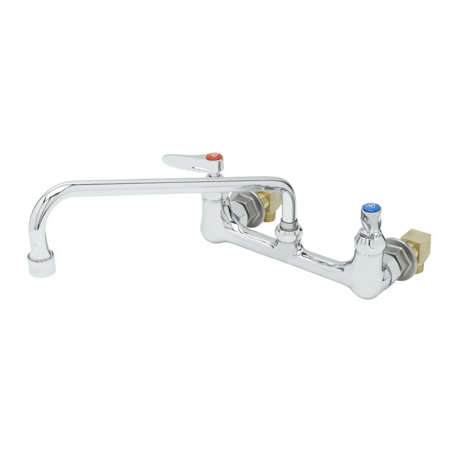 Upgrade Equipment Efficiency with the T&S Brass B-0231-VF22-EL Faucet, Wall/Splash Mount. This high-quality 8" c/c wall mount faucet is designed to enhance the functionality and performance of your commercial restaurant. With lever handles and a 12" swing nozzle, this faucet offers ease of use and flexibility in any kitchen setup. The VR aerator ensures a steady and consistent flow of water, while the polished chrome plated brass body adds durability and a sleek look to your space. The B-0230-K lock washer provided allows for a rigid application, ensuring stability and preventing leaks. Whether you're washing dishes, filling pots, or cleaning produce, this faucet is a reliable and efficient choice. Trust T&S Brass, a reputable vendor known for their top-notch products. Upgrade your restaurant equipment with the T&S Brass B-0231-VF22-EL Faucet and experience improved efficiency in your kitchen.