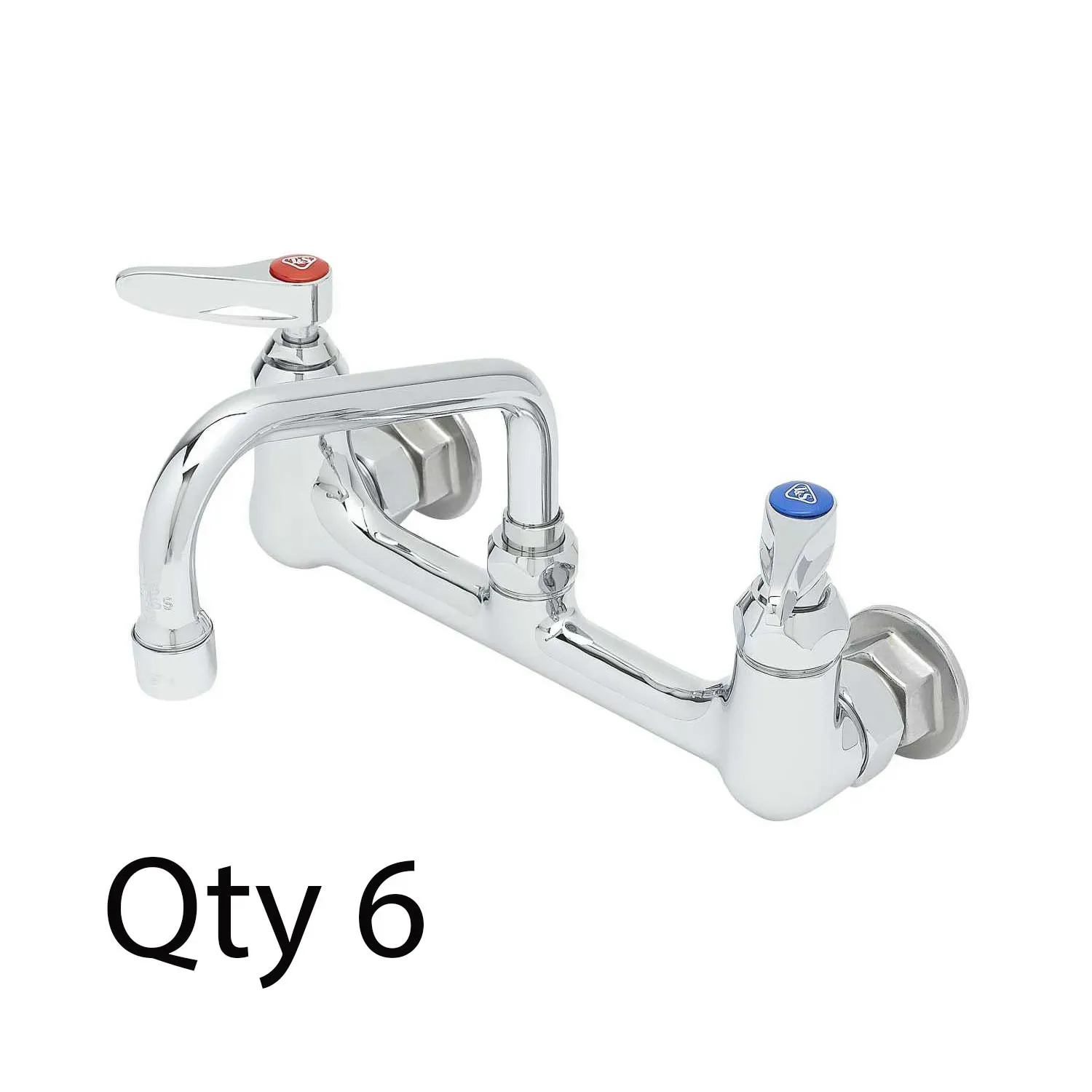 Facilitate Equipment Reliability with the T&S Brass B-0232-M Manual Faucets. Designed specifically for commercial restaurant use, this double pantry faucet is a reliable and efficient choice for any kitchen. The wall mount design and 8" centers make installation a breeze, while the 6" swing nozzle provides flexibility and convenience. With a quantity of 6 in each master pack, this faucet is perfect for larger establishments or those looking to stock up. This manual faucet is built to last, with durability and longevity in mind. Whether you're running a bustling restaurant or a small cafe, the T&S Brass B-0232-M Manual Faucets will help you maintain a smooth and reliable operation.