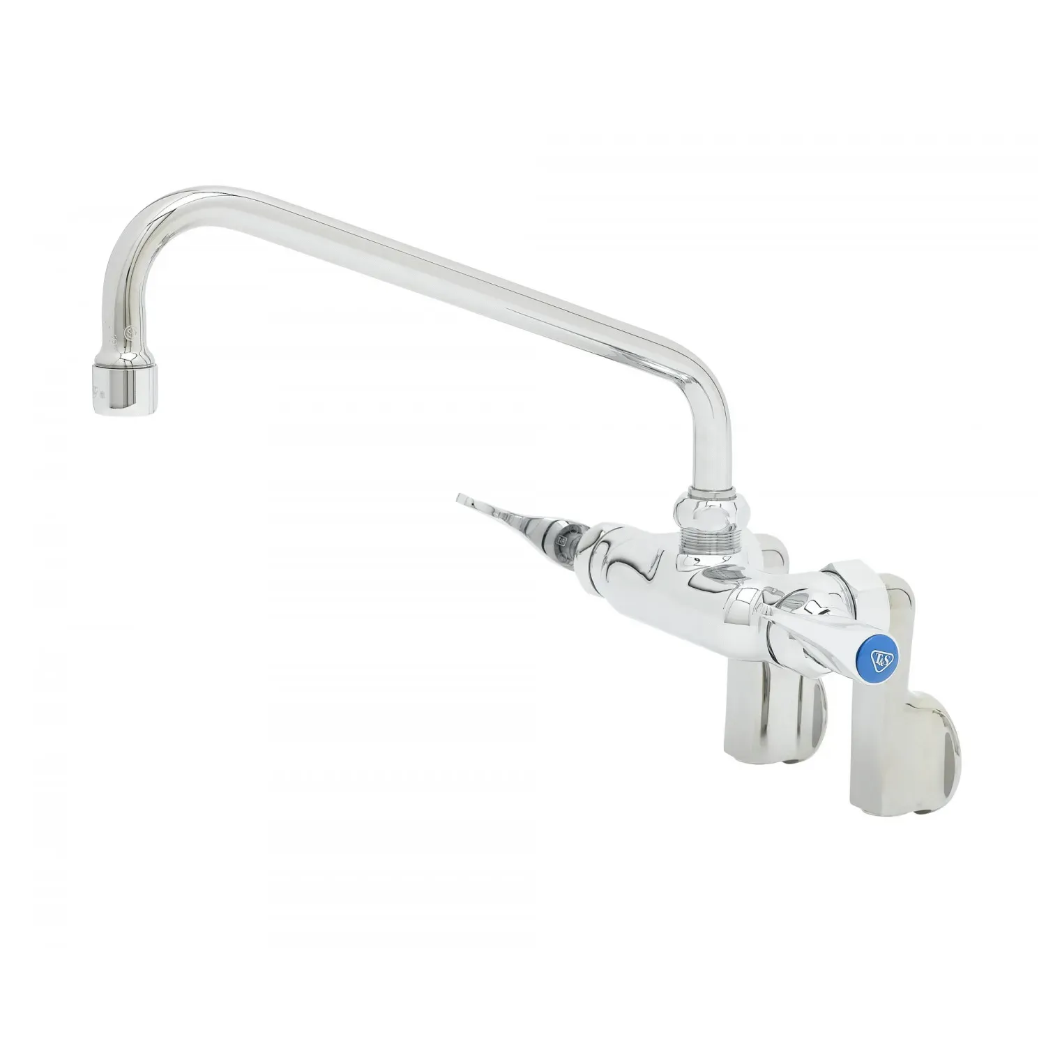 Enhance System Reliability with the T&S Brass B-0235-61X-CREK Faucet, Wall / Splash Mount. This high-quality double pantry swivel base faucet is designed specifically for commercial restaurant use, ensuring durability and reliability in even the busiest kitchen environments. The adjustable inlet wall mount mixing faucet features a polished chrome plated brass body, providing both style and functionality. With its 10" swing nozzle, this faucet offers flexibility and convenience, allowing for easy filling of pots and pans. The Ceramas construction ensures long-lasting performance, while the 061X nozzle delivers a powerful and precise water flow. Each unit comes with adjustable inlets and a lock washer for rigid applications, making installation a breeze. Trust T&S Brass, a reputable vendor known for their top-notch products, to enhance the efficiency and productivity of your restaurant's kitchen.