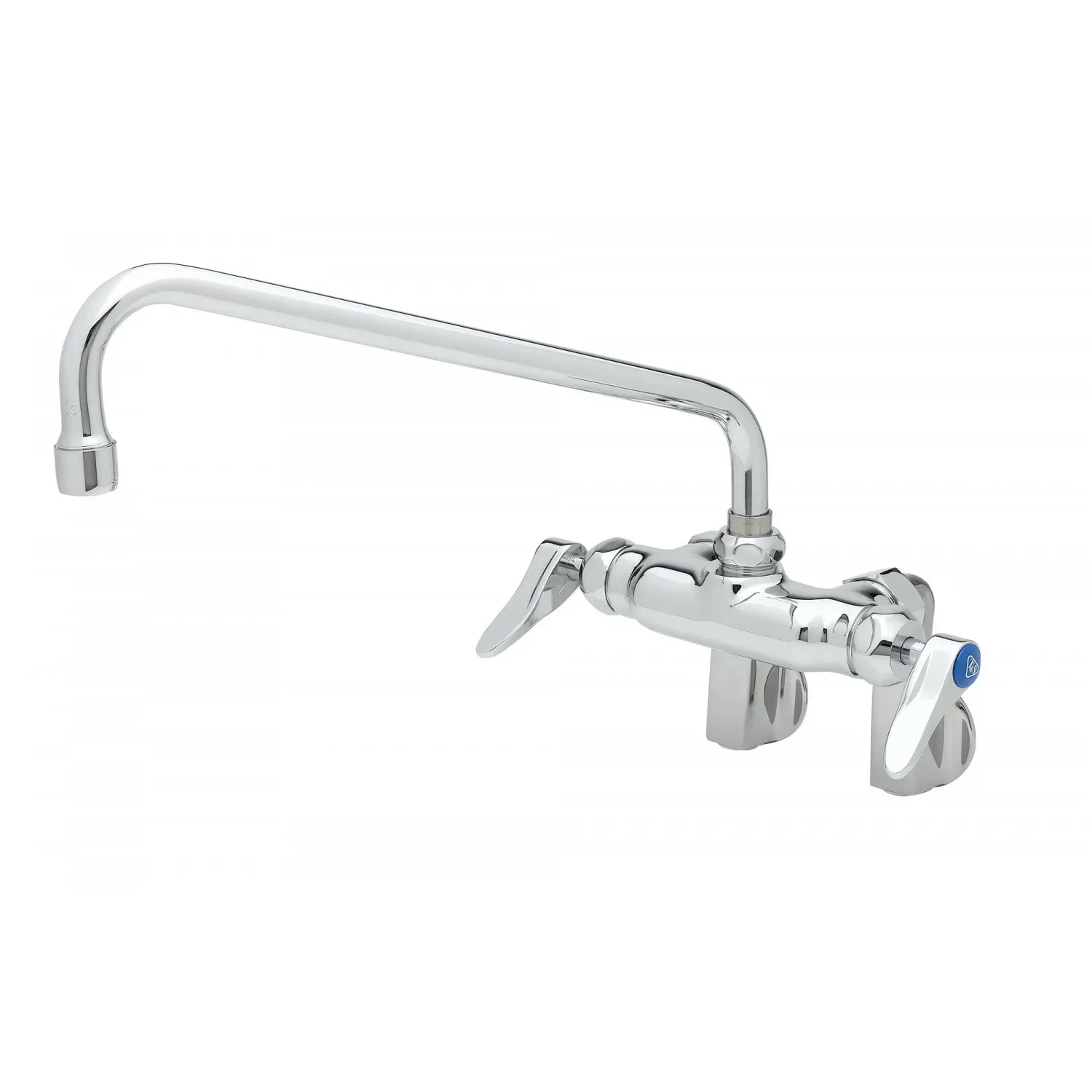 Secure System Operation with T&S Brass, B-0236-CR, Faucet, Wall / Splash Mount. This adjustable inlet wall mount mixing faucet is designed to ensure secure and efficient operation in commercial restaurant settings. With its polished chrome plated brass body, this faucet not only adds a touch of elegance to your establishment but also guarantees durability and longevity. The 12" swing nozzle provides flexibility and convenience, allowing for easy maneuvering and filling of large pots and pans. The faucet comes with Cerama cartridges with check valves, ensuring smooth and reliable water flow while preventing backflow contamination. The lock washer included in the specifications ensures a secure and rigid installation, minimizing the risk of leaks or malfunctions. Trust T&S Brass, a reputable vendor known for their high-quality products, to deliver a faucet that meets the demands of a busy restaurant kitchen. Upgrade your establishment with the T&S Brass B-0236-CR faucet for a secure and efficient system operation.
