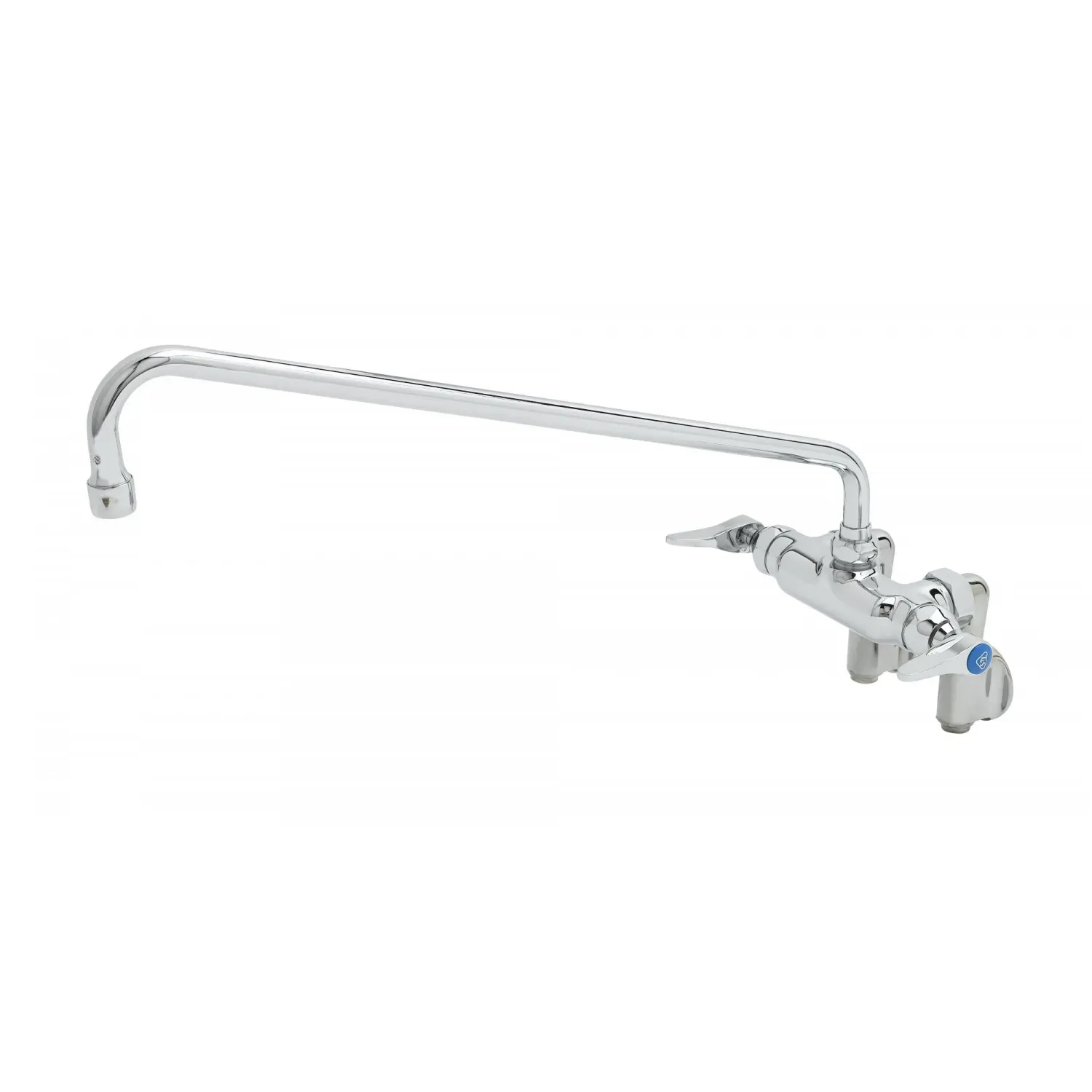 Improve System Functionality with the T&S Brass B-0240 Faucet, Wall / Splash Mount. Designed specifically for commercial restaurant use, this double pantry faucet offers exceptional performance and convenience. The adjustable centers allow for easy installation and customization to fit your specific needs. With integral stops, you can quickly and easily shut off the water supply when necessary, saving time and reducing the risk of leaks. The 18" swing nozzle provides a wide range of motion, allowing for efficient cleaning and filling of pots and pans. The polished chrome plated brass body not only adds a sleek and professional look to your kitchen but also ensures durability and longevity. Each unit comes with a lock washer included for rigid applications, providing added stability and security. Upgrade your restaurant's functionality with the T&S Brass B-0240 Faucet, Wall / Splash Mount.
