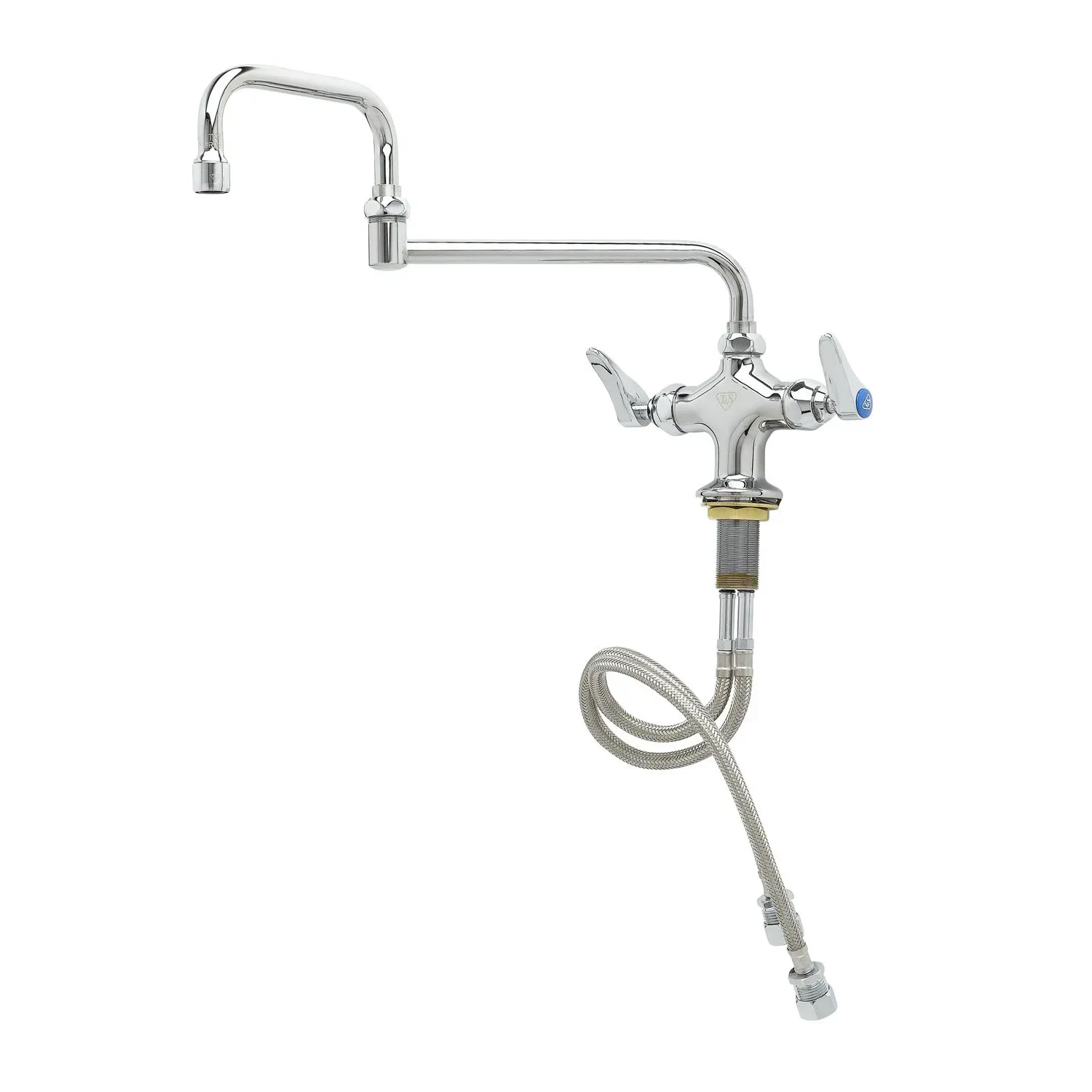 Ensure System Integrity with the T&S Brass B-0251 Faucet, Pantry. This commercial-grade double pantry faucet is designed to meet the rigorous demands of a busy restaurant kitchen. With its single hole base and 15" double-joint swing nozzle, this faucet offers flexibility and ease of use. The polished chrome plated brass body not only adds a sleek and professional look to your kitchen, but it also ensures durability and longevity. The lock washer provided allows for a rigid application, ensuring that the faucet stays securely in place. Whether you're washing dishes, filling pots, or rinsing produce, the T&S Brass B-0251 Faucet, Pantry is the perfect choice for any commercial restaurant. Trust in T&S Brass, a trusted name in the industry, to deliver a reliable and high-quality product that will keep your kitchen running smoothly.