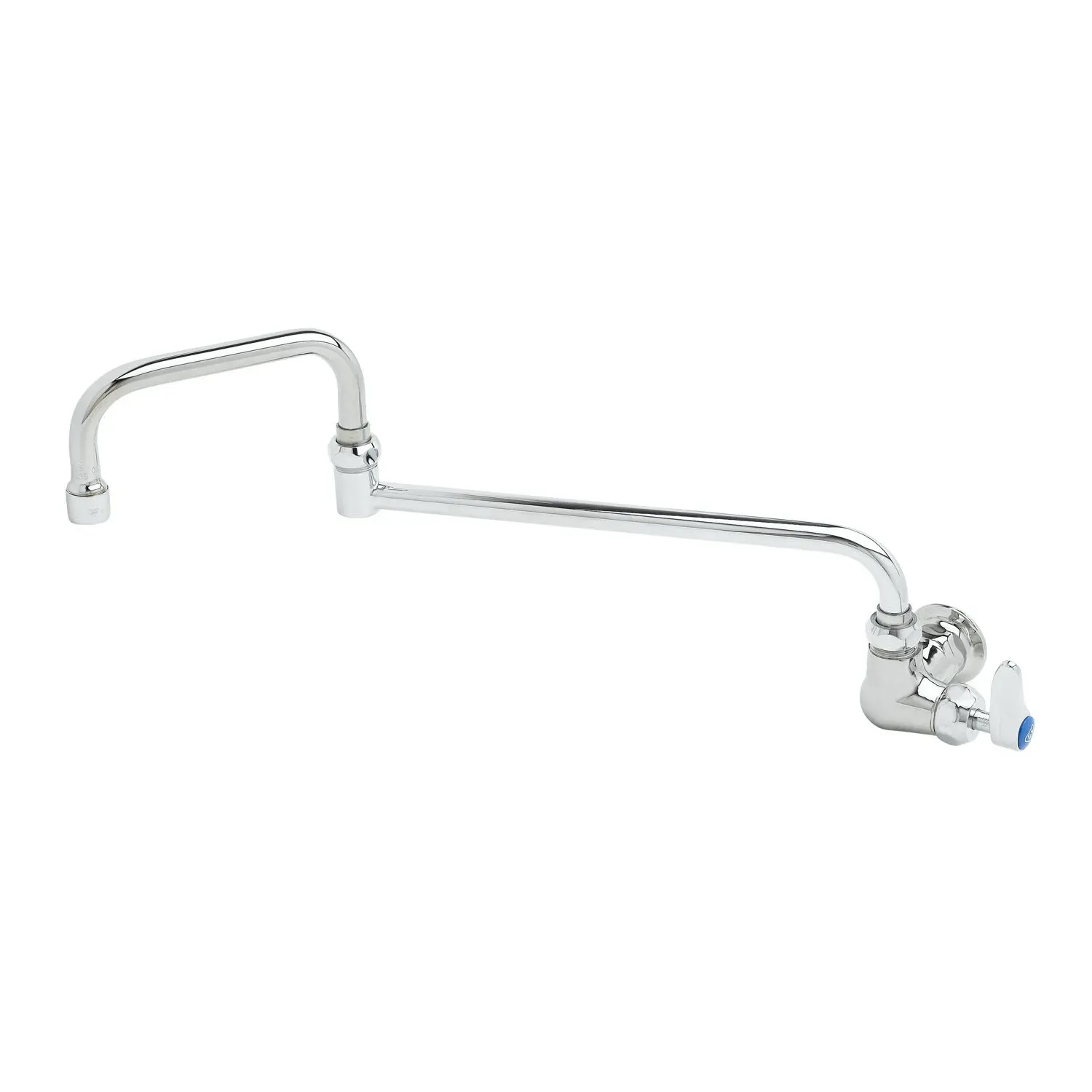 Ensure efficient functionality with the T&S Brass B-0260-CR-177F Faucet, Pantry. This single temp wall mount faucet is designed to meet the demands of a commercial restaurant setting. With its polished chrome plated brass body, it not only adds a touch of elegance to your pantry but also ensures durability and longevity. The quarter-turn Cerama cartridge with a check valve provides smooth and precise control over the water temperature, allowing for easy adjustments. The lever handle with a blue index adds convenience and ease of use. The 18" double-joint swing nozzle offers flexibility and reach, making it perfect for various tasks in the kitchen. Whether you're washing dishes or filling pots, this faucet delivers reliable performance. Trust T&S Brass, a reputable vendor known for their quality products. Upgrade your pantry with the T&S Brass B-0260-CR-177F Faucet, Pantry and experience efficient functionality like never before.