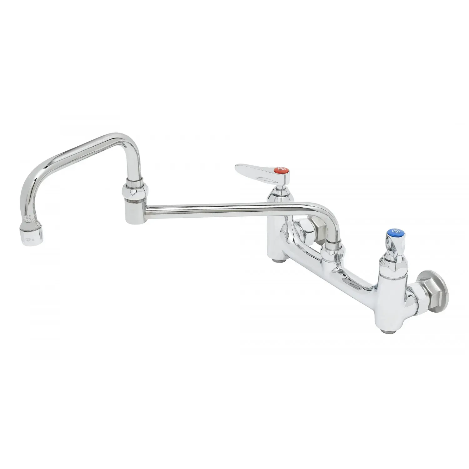 Optimize System Operation with the T&S Brass, B-0266-BST, Faucet, Wall / Splash Mount. This double pantry faucet is designed specifically for commercial restaurant use, ensuring efficient and reliable performance. With its 8" wall mount and polished chrome plated brass body, this faucet not only adds a sleek and professional look to your kitchen but also withstands the demands of a busy restaurant environment. The built-in service stops allow for easy maintenance and repair, minimizing downtime and maximizing productivity. The 15" double joint swing nozzle provides flexibility and precision, allowing you to easily reach multiple sink compartments. With a 9" back nozzle and 6" front nozzle, this faucet ensures thorough and efficient cleaning. Trust T&S Brass, a reputable vendor known for their quality and durability, to enhance your restaurant's operations with this wall/splash mount faucet.