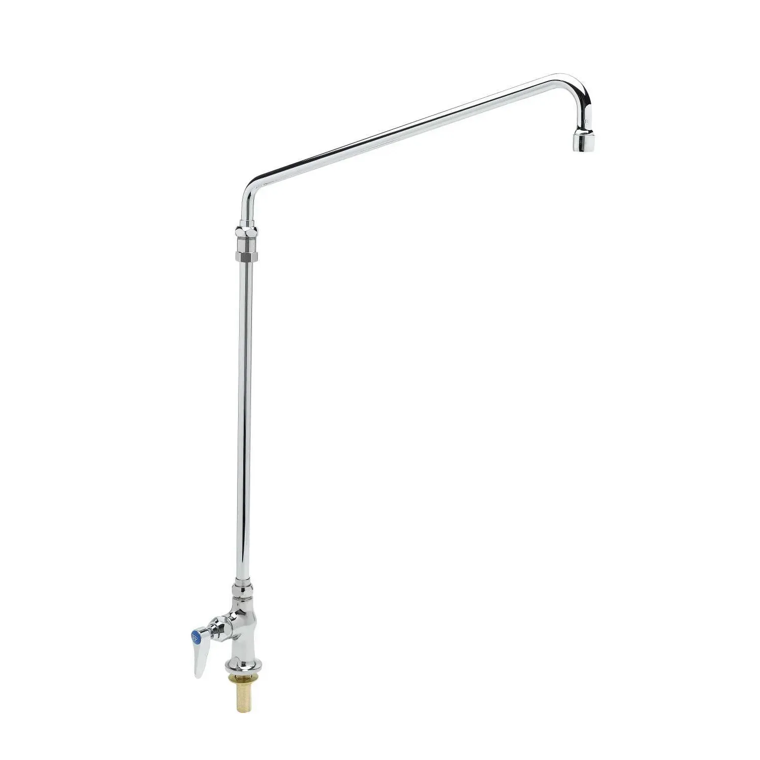 Upgrade System Quality with T&S Brass, B-0275, Faucet, Pantry. This single hole single temperature deck mount faucet is designed to enhance the efficiency and functionality of your commercial restaurant. With its polished chrome plated brass body, it not only adds a touch of elegance to your pantry area but also ensures durability and longevity. The 18" elevated swing nozzle provides flexibility and convenience, allowing you to easily fill and clean large pots and pans. The stream regulator outlet ensures a steady and controlled flow of water, minimizing wastage and maximizing efficiency. Whether you're washing dishes or prepping ingredients, this T&S Brass faucet is a reliable and essential tool in any commercial kitchen. Trust in the quality and performance of T&S Brass to elevate your restaurant's operations and deliver exceptional results.