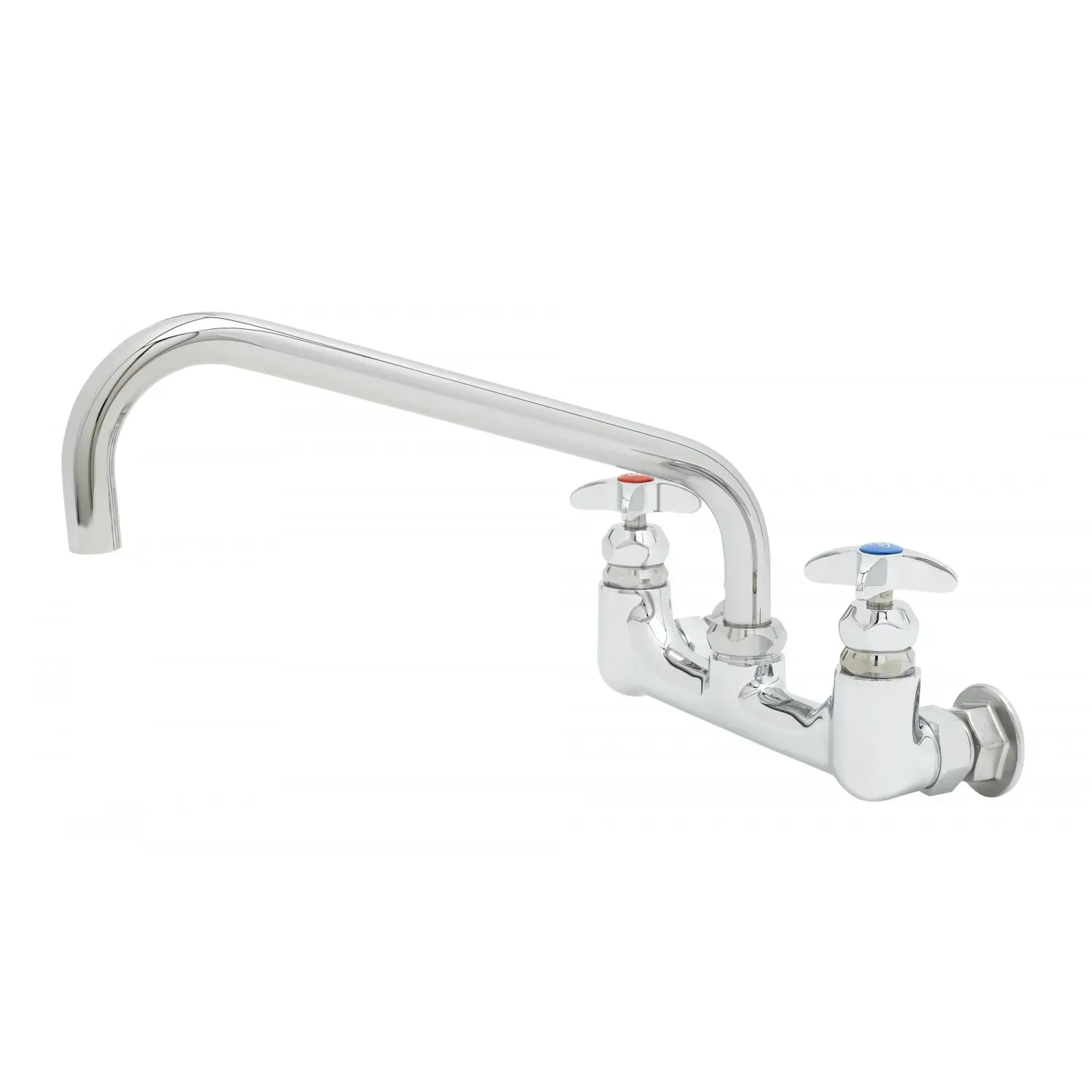 Secure System Operation with T&S Brass, B-0290-CVH, Faucet, Wall / Splash Mount. This Big-Flo Mixing Faucet is designed for commercial restaurant use, ensuring a secure and efficient system operation. With its 8" wall mount and polished chrome plated brass body, this faucet is not only durable but also adds a touch of elegance to any kitchen. The 12" swing nozzle provides flexibility and convenience, allowing for easy maneuvering and filling of large pots and pans. The 00LL inlet elbows and check valves ensure a steady flow of water, preventing any backflow or contamination. This faucet also comes with a lock washer for rigid application, ensuring stability and preventing any leaks. Trust T&S Brass for reliable and high-quality products that meet the demands of a busy commercial kitchen.
