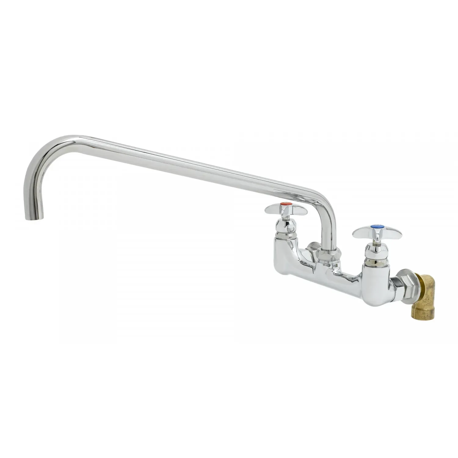 Improve system efficiency with the T&S Brass B-0291 Faucet, Wall/Splash Mount. Designed specifically for commercial restaurant use, this faucet is a game-changer in terms of functionality and durability. With its 8" wall mount and polished chrome plated brass body, it not only adds a touch of elegance to your kitchen but also ensures long-lasting performance. The 18" Big-Flo plain end swing nozzle provides flexibility and convenience, allowing you to easily fill large pots and pans. The lock washer provided ensures a rigid application, preventing any leaks or drips. This faucet is optimized for efficiency, helping you save water and reduce utility costs. Whether you're running a busy restaurant or a small cafe, the T&S Brass B-0291 Faucet is a reliable and efficient choice that will enhance your kitchen operations.