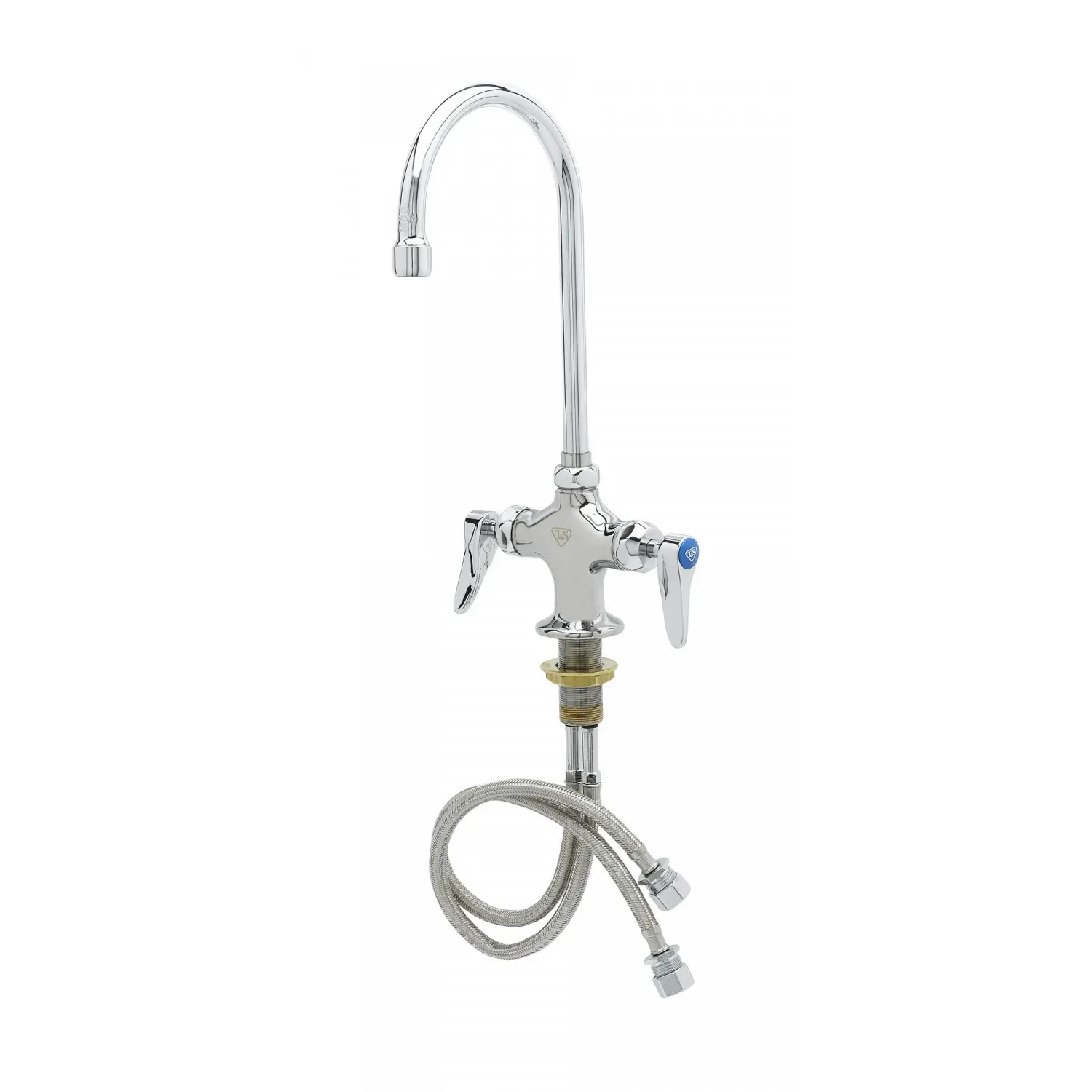 Improve system efficiency with the T&S Brass B-0300-CR Pantry Faucet. Designed specifically for commercial restaurant use, this double pantry faucet is a must-have for any professional kitchen. With its single hole base and swivel/rigid gooseneck, this faucet offers flexibility and convenience, allowing for easy maneuverability and precise water control. The polished chrome plated brass body not only adds a touch of elegance to your space but also ensures durability and longevity. The stream regulator provides a steady flow of water, perfect for filling pots and pans quickly. This faucet comes with a lock washer for rigid application, ensuring a secure and stable installation. Trust T&S Brass, a reputable vendor in the industry, to deliver high-quality products that meet the demands of a busy restaurant environment. Upgrade your kitchen with the T&S Brass B-0300-CR Pantry Faucet and experience improved efficiency and reliability.