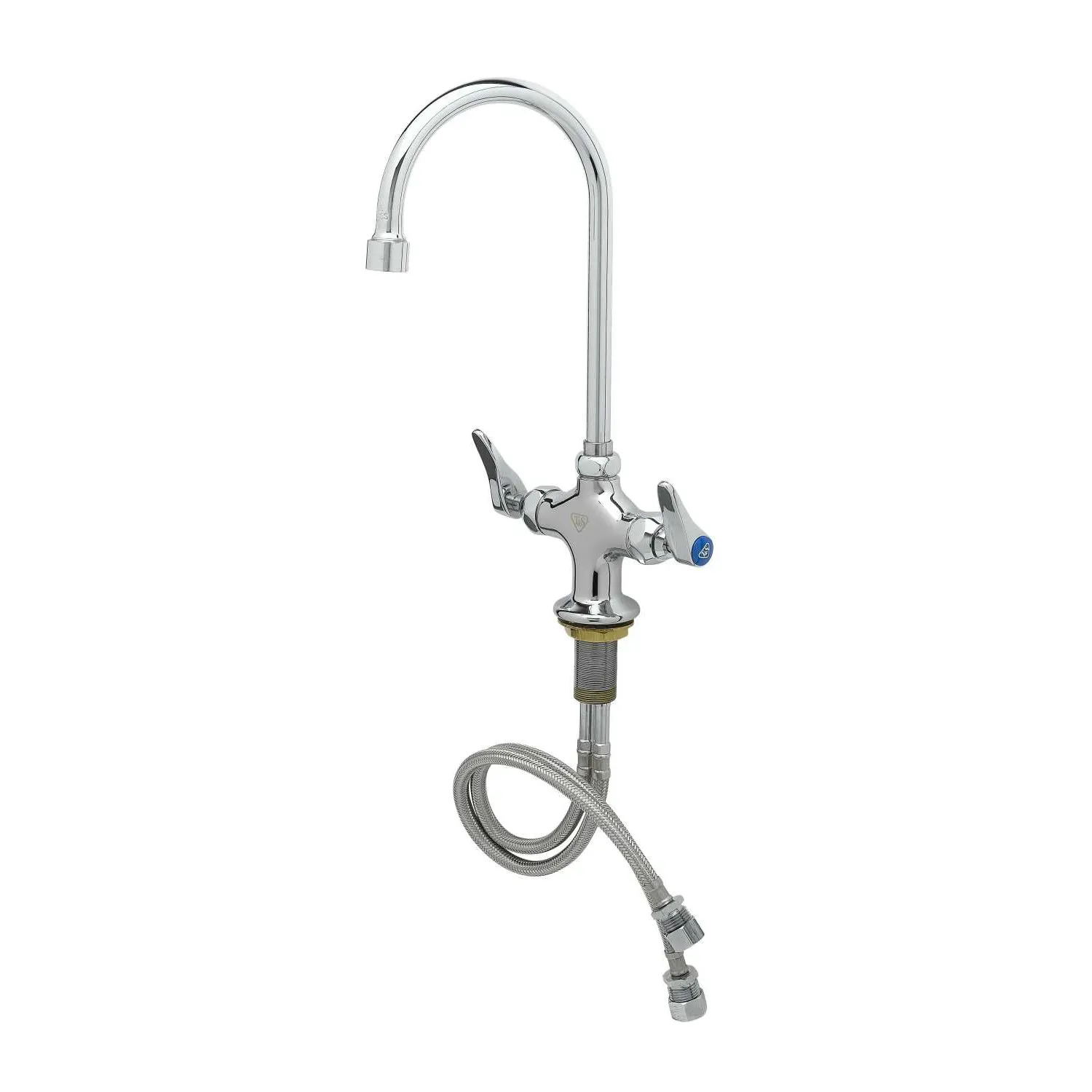 Upgrade Operational Reliability with the T&S Brass B-0300-VR Faucet, Pantry. This double pantry faucet is designed to enhance efficiency and durability in commercial restaurant settings. With its single hole base and rigid gooseneck, this faucet offers a sleek and functional solution for your pantry needs. The vandal-resistant feature ensures long-lasting performance, even in high-traffic areas. The polished chrome plated brass body adds a touch of elegance to any kitchen decor. The 5 3/4" swivel/rigid gooseneck provides flexibility and convenience, allowing for easy access to water wherever it's needed. This faucet also includes a lock washer to convert it to a rigid option, providing added stability. Trust in the T&S Brass B-0300-VR Faucet, Pantry to deliver exceptional performance and durability in your commercial kitchen.