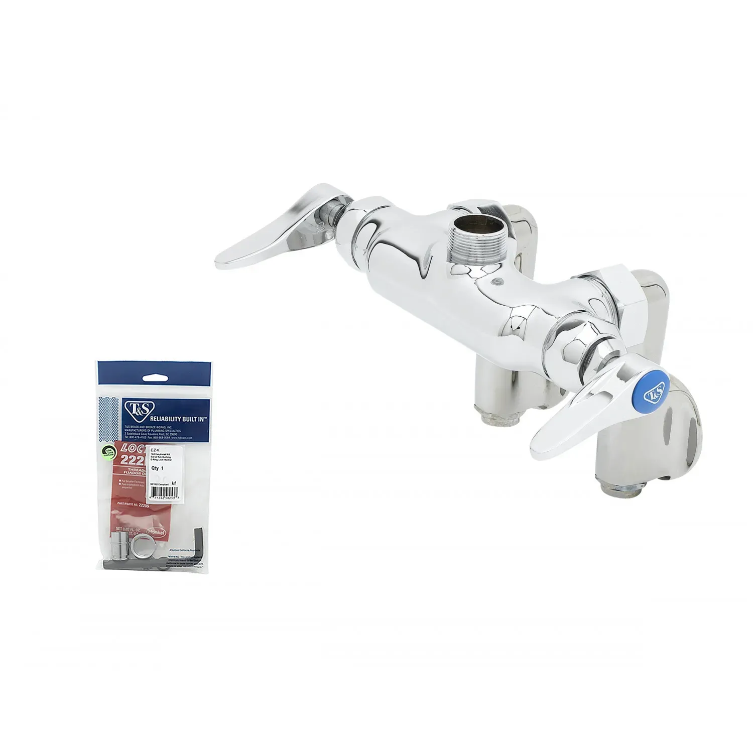 Maintain System Integrity with the T&S Brass B-0342-LN Faucet, Wall/Splash Mount. This double pantry swivel base faucet is designed for commercial restaurant use, ensuring durability and reliability. The adjustable center allows for easy installation and customization to fit your specific needs. With integral stops, you can conveniently control the water flow and prevent any leaks or drips. The polished chrome plated brass body not only adds a sleek and professional look to your kitchen but also ensures long-lasting performance. The swivel outlet accepts standard T&S swing nozzles, providing flexibility and convenience in directing the water flow. Additionally, the faucet includes the EZ-K kit, allowing you to convert rigid risers to EasyInstall effortlessly. Trust T&S Brass, a reputable vendor in the industry, to deliver a high-quality and efficient faucet that will enhance the functionality of your commercial restaurant kitchen.