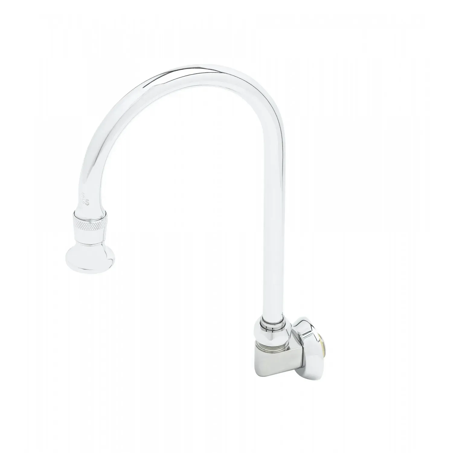 Secure Equipment Reliability with the T&S Brass B-0528 Faucet, Wall / Splash Mount. Designed specifically for commercial restaurant use, this high-quality faucet ensures durability and efficiency in any kitchen setting. The wall mount swivel/rigid dummy gooseneck is perfect for remote locations, providing flexibility and convenience. With a 2.2 GPM rosespray outlet, this faucet delivers a powerful and consistent water flow, making it ideal for washing dishes, rinsing produce, and filling pots. The lock washer provided allows for rigid application, ensuring stability and preventing leaks. The T&S Brass B-0528 is part of Series 1, guaranteeing compatibility with other T&S Brass products. Packaged by T&S Brass, this faucet is a reliable choice for any commercial kitchen. Upgrade your restaurant's equipment with the T&S Brass B-0528 Faucet, Wall / Splash Mount and experience enhanced performance and longevity.