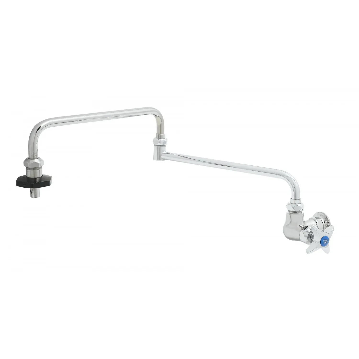 Enhance Equipment Efficiency with the T&S Brass B-0594-CR Faucet, Kettle / Pot Filler. This wall-mounted pot filler is designed to streamline your restaurant's operations and improve productivity. With its single control and insulated on-off feature, you can easily fill pots and kettles with precise temperature control, saving time and energy. The 24" double-joint nozzle provides flexibility and reach, allowing you to fill large containers without any hassle. The faucet is built to last, with a cerama construction that ensures durability and longevity in a busy commercial kitchen. The T&S Brass B-0594-CR is packed with features that make it perfect for restaurant use. It comes with a lock washer for rigid application, ensuring a secure installation. Trust T&S Brass, a reputable vendor in the industry, to deliver a high-quality pot filler that will enhance your restaurant's efficiency and performance.