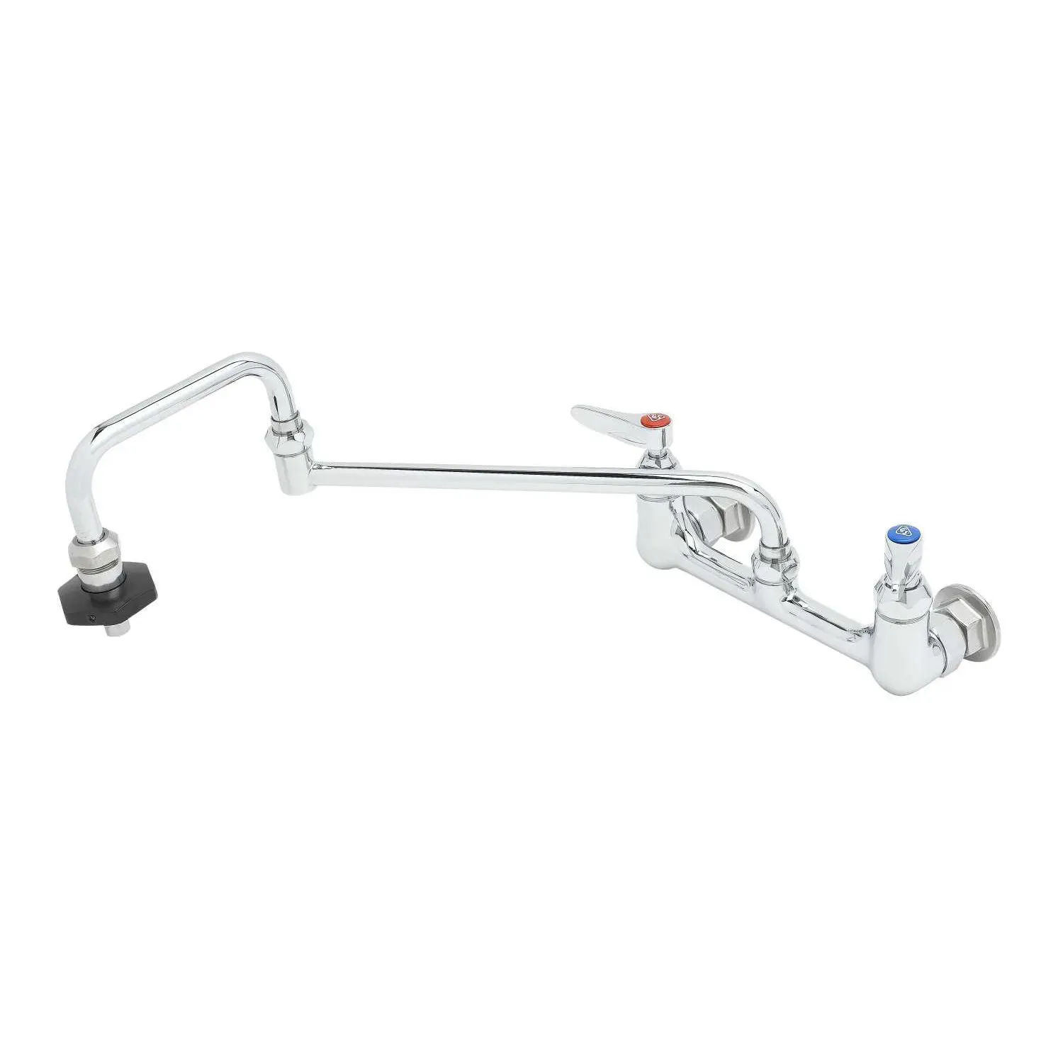 Optimize Operational Functionality with T&S Brass, B-0597-CR, Faucet, Kettle / Pot Filler. This 8" wall mount pot filler from T&S Brass is designed to enhance the efficiency and convenience of your commercial restaurant kitchen. With its Ceramas construction, this faucet ensures durability and longevity, even in high-volume usage. The 18" double-joint swing nozzle provides flexibility and ease of use, allowing you to fill pots and kettles with precision and control. The polished chrome plated brass body adds a touch of elegance to your kitchen decor while ensuring resistance to corrosion and tarnishing. The insulated on/off outlet helps conserve energy and prevents heat loss, making it an ideal choice for busy kitchens. Whether you're filling large pots for cooking or replenishing water in kettles, this T&S Brass pot filler is a reliable and efficient addition to any commercial restaurant kitchen.