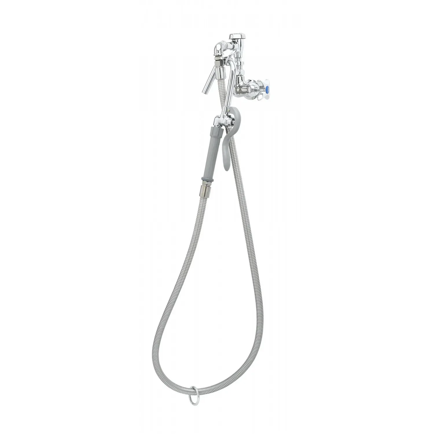 Upgrade Equipment Efficiency with the T&S Brass B-0605-CR Faucet, Kettle / Pot Filler. This wall-mounted pot filler is designed to enhance the functionality and convenience of your commercial restaurant kitchen. The Cerama construction ensures durability and longevity, while the vacuum breaker prevents backflow contamination. The stainless steel hose adds a touch of elegance and is resistant to corrosion, making it perfect for high-volume use. With a pressure range of 20 - 125 psi and a temperature range of 40°F - 140°F, this pot filler can handle any culinary task with ease. The self-closing hook allows for easy storage and accessibility, optimizing space in your busy kitchen. With a flow rate of 3.14 GPM at 60 psi, this pot filler provides a steady stream of water, saving you time and effort. Upgrade your restaurant equipment with the T&S Brass B-0605-CR Faucet, Kettle / Pot Filler and experience improved efficiency and convenience in your kitchen.