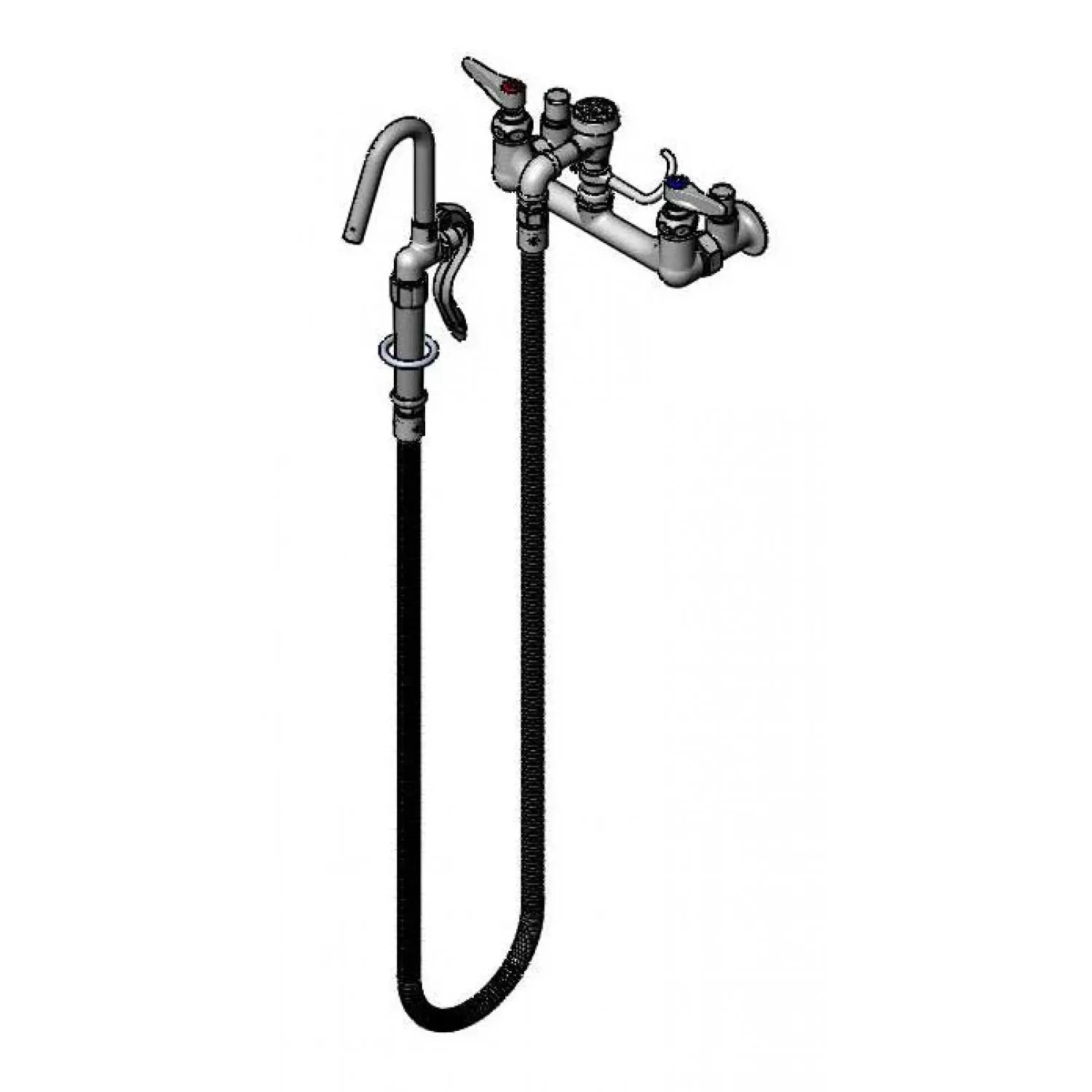 Improve System Performance with the T&S Brass B-0610-JJ Faucet, Kettle / Pot Filler. This wall-mounted pot filler is designed to enhance efficiency in commercial restaurant kitchens. With its 8" centers and chrome-plated brass body, it offers durability and easy installation. The atmospheric vacuum breaker with an EasyInstall riser ensures a safe and reliable water supply, while the 68" flexible stainless steel hose provides ample reach and maneuverability. The heat-resistant gray handle and hold-down ring add convenience and stability during use. Whether you're filling large pots or kettles, this pot filler is a must-have for any busy kitchen. Upgrade your restaurant's workflow with the T&S Brass B-0610-JJ Faucet, Kettle / Pot Filler.