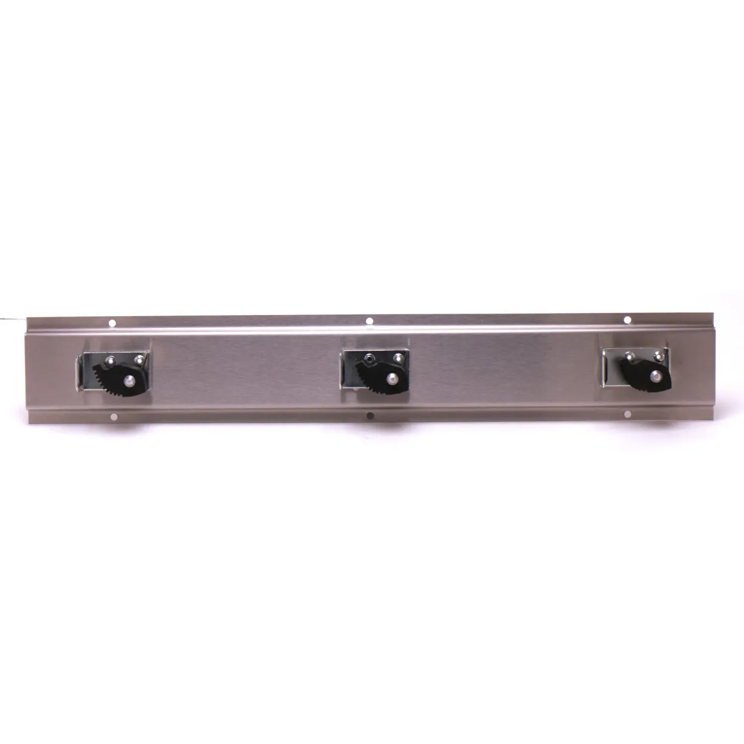 Optimize System Durability with T&S Brass, B-0653, Mop Broom Holder. This stainless steel mop hanger is a must-have for any commercial restaurant. With its three spring-loaded rubber grips, it securely holds mops and brooms, preventing them from falling and causing accidents. Measuring 17 11/16" long by 2 5/8" wide, it is compact yet spacious enough to accommodate multiple cleaning tools. The durable construction ensures long-lasting performance, even in high-traffic areas.
