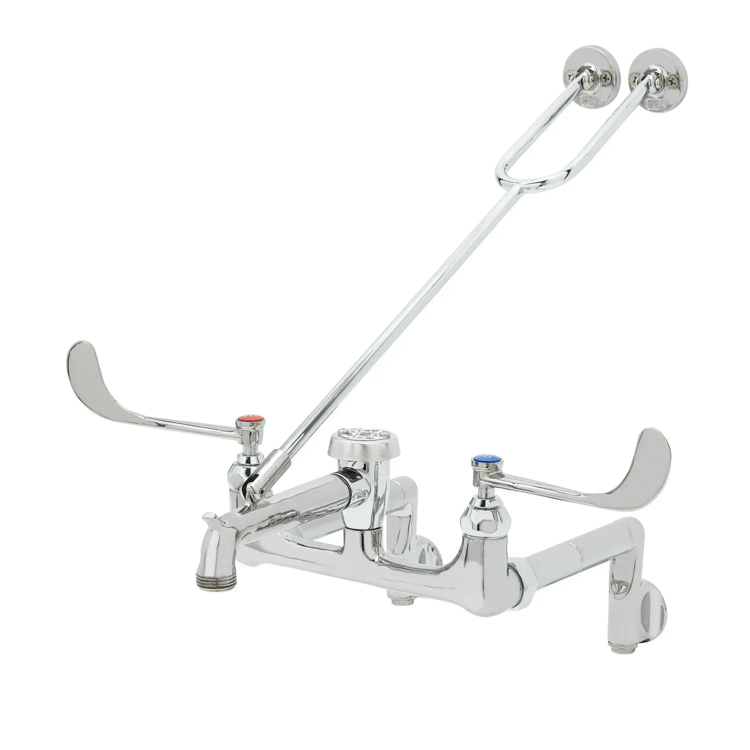 Upgrade Operational Reliability with the T&S Brass B-0655-04 Manual Faucet. Designed specifically for commercial restaurant use, this service sink faucet offers exceptional performance and durability. With its 8" centers and adjustable arms, it provides flexibility in installation, ensuring a perfect fit for any sink. The faucet features integral stops, allowing for easy maintenance and repairs without shutting off the water supply to the entire restaurant. Its top brace adds stability and support, ensuring long-lasting reliability even in high-volume environments. The polished chrome plated brass body and spout not only enhance the faucet's aesthetic appeal but also provide resistance to corrosion and tarnishing. Equipped with a vacuum breaker, pail hook, and garden hose male outlet, this faucet offers versatility and convenience. Certified to meet various industry standards, including ASME, CSA, NSF, and ADA, the T&S Brass B-0655-04 Manual Faucet is the perfect choice for upgrading your restaurant's operational reliability.