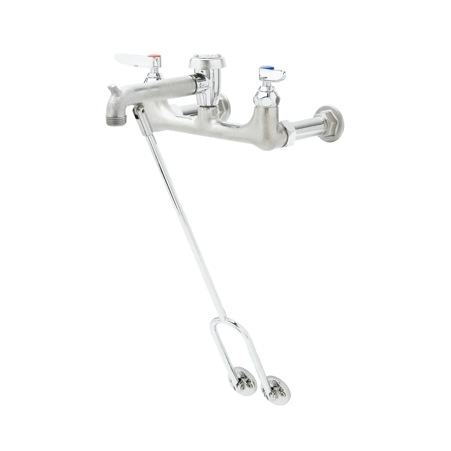Upgrade Equipment Reliability with the T&S Brass B-0655-RGH Manual Faucet. Designed specifically for commercial restaurant use, this wall-mounted faucet is a reliable and durable choice for your establishment. With its 8" centers and garden hose outlet, this faucet offers versatility and convenience. The rough chrome plated brass body and spout with a pail hook and garden hose male outlet ensure long-lasting performance. The compression cartridges with spring checks and lever handles provide easy operation and control. Certified to ASME A112.18.1/CSA B125.1, NSF 61-Section 9, and NSF 372, this faucet meets the highest industry standards for safety and quality. It also meets ADA ANSI/ICC A117.1 requirements, making it accessible for all users. Upgrade your restaurant's equipment with the T&S Brass B-0655-RGH Manual Faucet and enjoy reliable performance and convenience in every use.