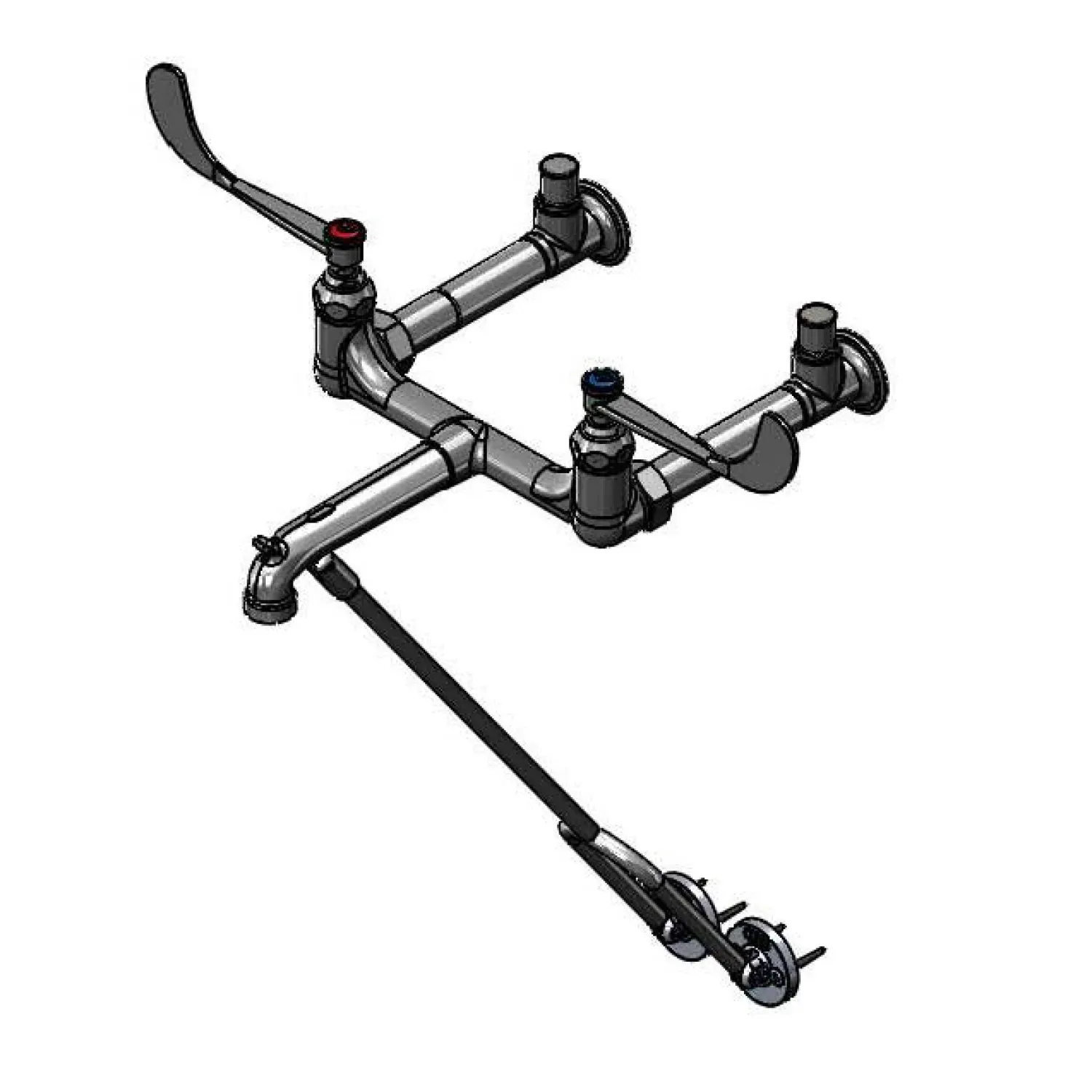 Optimize Equipment Use with the T&S Brass B-0664-01 Manual Faucet. This wall-mounted faucet is designed specifically for commercial restaurant use, offering convenience and durability. With its 8" centers and wrist handles, this faucet provides easy control and operation, allowing staff to efficiently handle various tasks. The integral stops and wall brace ensure stability and prevent leaks, minimizing downtime and maintenance costs. The polished chrome plated brass body and spout not only add a sleek and professional look to your establishment but also guarantee long-lasting performance. The compression cartridges with spring checks and 6" wrist action handles further enhance the faucet's functionality and ease of use. Certified to meet industry standards, including ASME A112.18.1/CSA B125.1, NSF 61-Section 9, and NSF 372, this faucet ensures compliance and safety. Upgrade your restaurant's equipment with the T&S Brass B-0664-01 Manual Faucet for reliable and efficient operation.