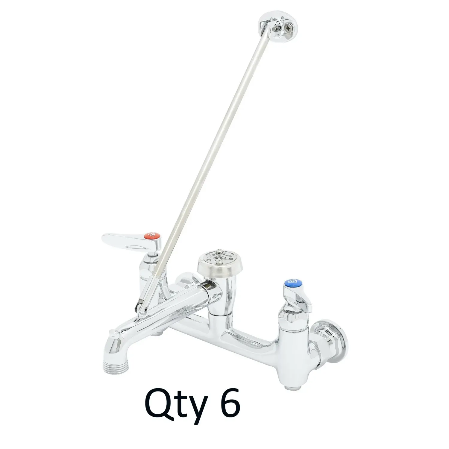 Upgrade Operational Reliability with T&S Brass, B-0665-BSTPM, Manual Faucets. This service sink faucet is designed specifically for commercial restaurant use, offering exceptional durability and functionality. With a wall mount design and 8" centers, it provides a convenient and space-saving solution for any kitchen. The built-in stops ensure precise control of water flow, allowing for efficient operation and minimizing water waste. The vacuum breaker feature adds an extra layer of protection, preventing backflow and ensuring the safety of your water supply. The polish finish not only enhances the faucet's aesthetic appeal but also makes it easy to clean and maintain. Trust T&S Brass to deliver reliable and high-quality manual faucets that meet the demands of a busy commercial kitchen.