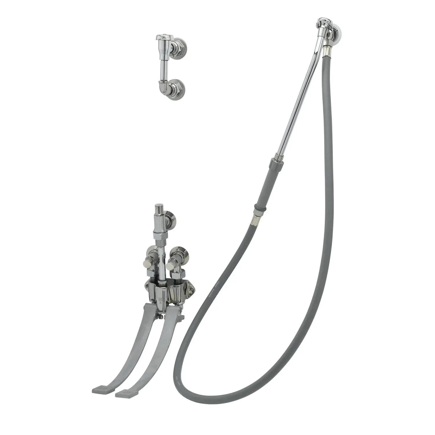 Optimize Equipment Function with T&S Brass, B-0676, Manual Faucets. This bedpan washer is designed to enhance efficiency and hygiene in commercial restaurant settings. The pedal valve allows for hands-free operation, minimizing the risk of cross-contamination. The extended spray outlet ensures thorough cleaning, while the 5' PVC hose provides flexibility and reach. With its elevated atmospheric vacuum breaker, this washer prevents backflow and maintains water purity. The wall hook outlet and heat-resistant handle make storage and handling convenient and safe. Certified to ASME A112.18.1/CSA B125.1 and ASSE 1001, this washer meets industry standards for quality and safety. The 2.2 GPM rosespray nozzle delivers a powerful spray for effective cleaning. Whether it's cleaning bedpans or other equipment, the T&S Brass B-0676 is a reliable and efficient choice for any commercial restaurant.