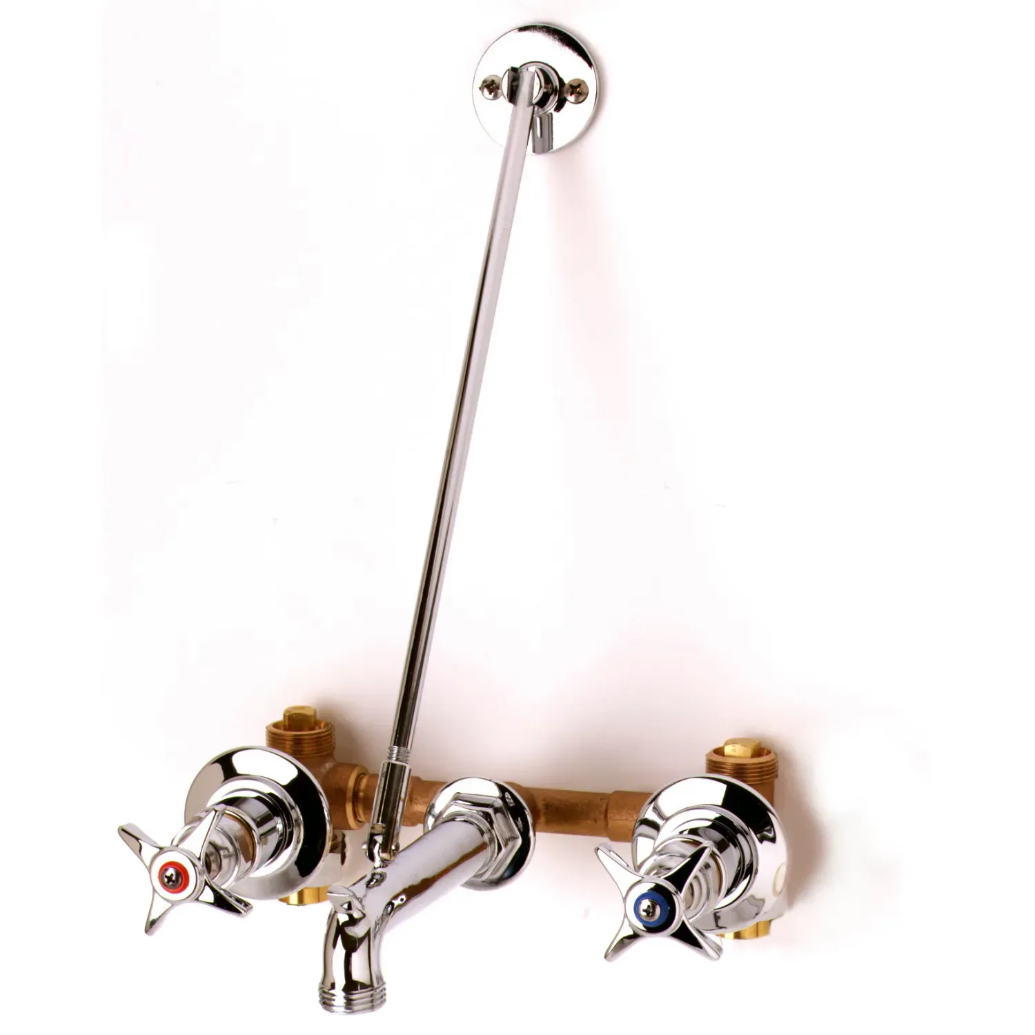 Improve system performance with the T&S Brass B-0697 Manual Faucet. Designed specifically for commercial restaurant use, this service sink faucet is a reliable and efficient choice for any kitchen. The concealed mixing valve ensures precise temperature control, allowing you to easily adjust the water to meet your needs. The wall brace provides added stability, ensuring that the faucet remains securely in place even during heavy use. With a 3/4" garden hose thread, this faucet is versatile and can be used for a variety of tasks, from filling buckets to rinsing off dishes. Upgrade your restaurant's plumbing system with this high-quality manual faucet and experience improved performance and efficiency.