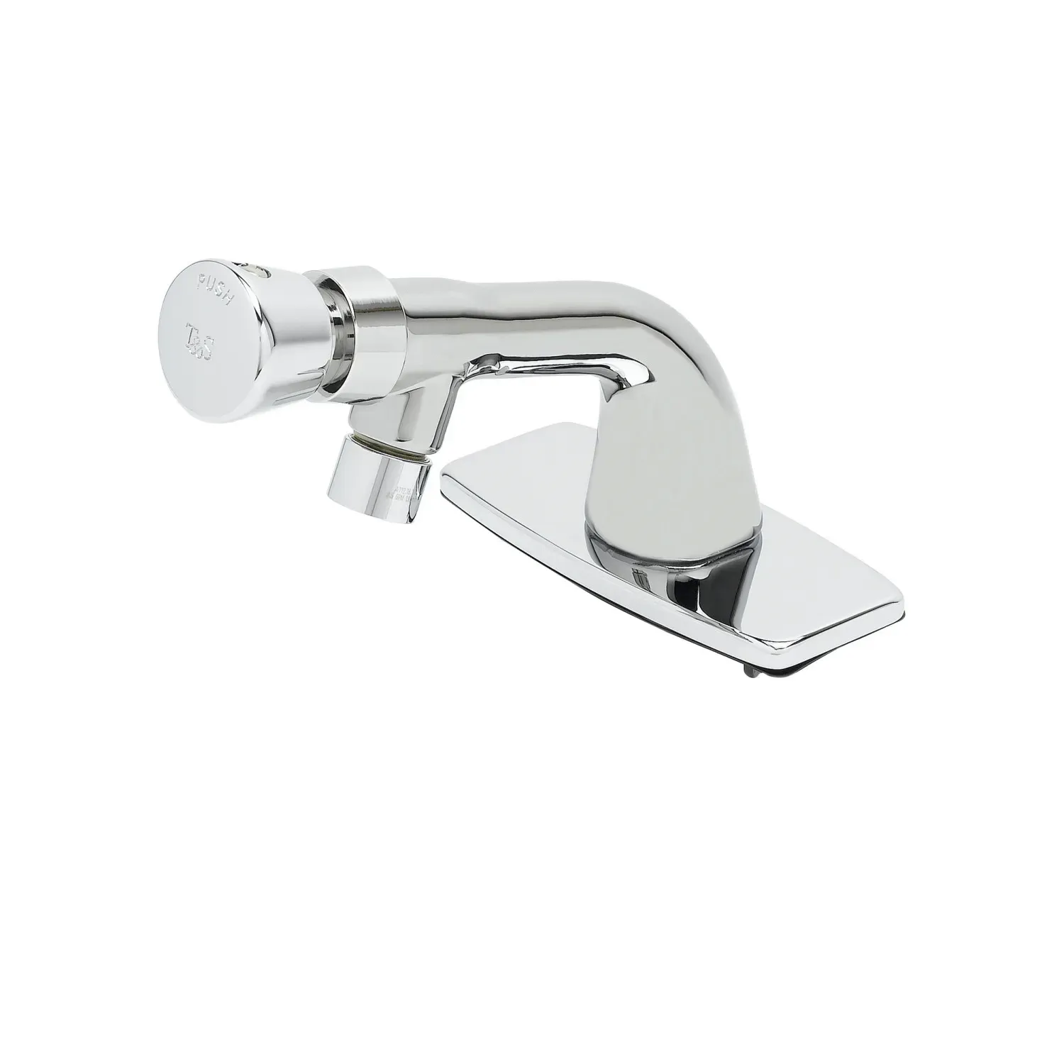 Optimize Equipment Function with T&S Brass, B-0805-VR-VF05, Manual Faucets. This metering faucet is designed to enhance efficiency and convenience in commercial restaurant settings. With its single temperature control and push-button cap, it allows for easy operation and precise water temperature adjustment. The VR deckplate adds a sleek and professional touch to any sink, while the vandal-resistant 0.5 GPM non-aerated spray ensures water conservation without compromising performance. The polished chrome plated brass body not only guarantees durability but also adds a touch of elegance to the overall design. Certified to ASME A112.18.1/CSA B125.1, NSF 61-Section 9, and NSF 372, this faucet meets the highest industry standards for safety and quality. Additionally, it complies with ADA ANSI/ICC A117.1 requirements, making it accessible to all users. Upgrade your restaurant's functionality with the T&S Brass B-0805-VR-VF05 manual faucet and experience the perfect blend of performance, reliability, and style.