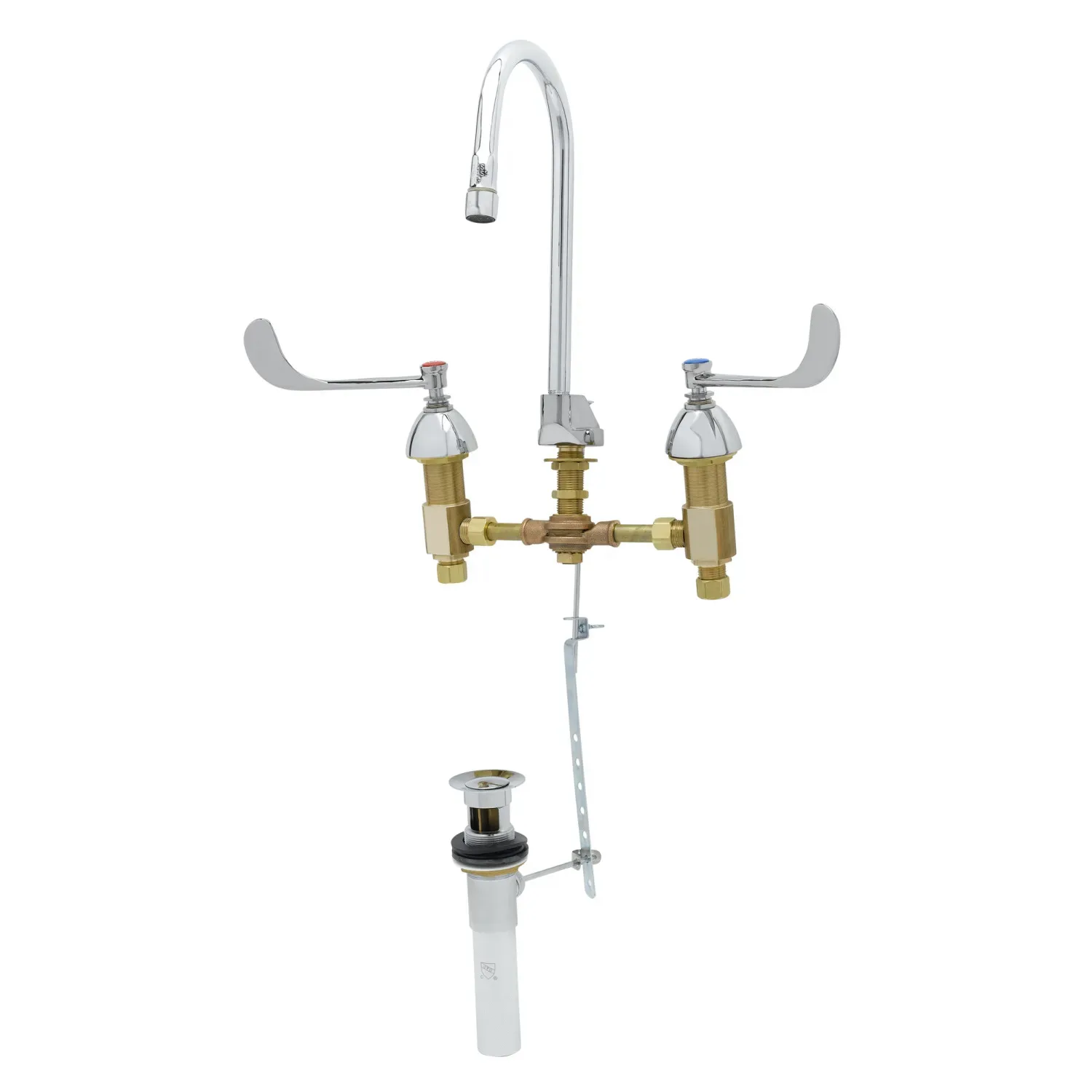 Optimize Equipment Function with T&S Brass, B-0869, Manual Faucets. This medical faucet is designed to enhance efficiency and convenience in a commercial restaurant setting. With its concealed body and 6" wrist handles, this faucet offers a sleek and modern look while ensuring easy operation. The swivel/rigid gooseneck allows for flexible use, while the aerator ensures a steady and controlled flow of water. The compression cartridges with spring checks provide reliable performance and prevent leaks. The chrome plated escutcheons add a touch of elegance to any restaurant decor. Certified to ASME A112.18.1/CSA B125.1, NSF 61-Section 9, and NSF 372, this faucet meets the highest industry standards for safety and quality. It also meets ADA ANSI/ICC A117.1 requirements, making it accessible for all users. Upgrade your restaurant's functionality with the T&S Brass B-0869 Manual Faucet.