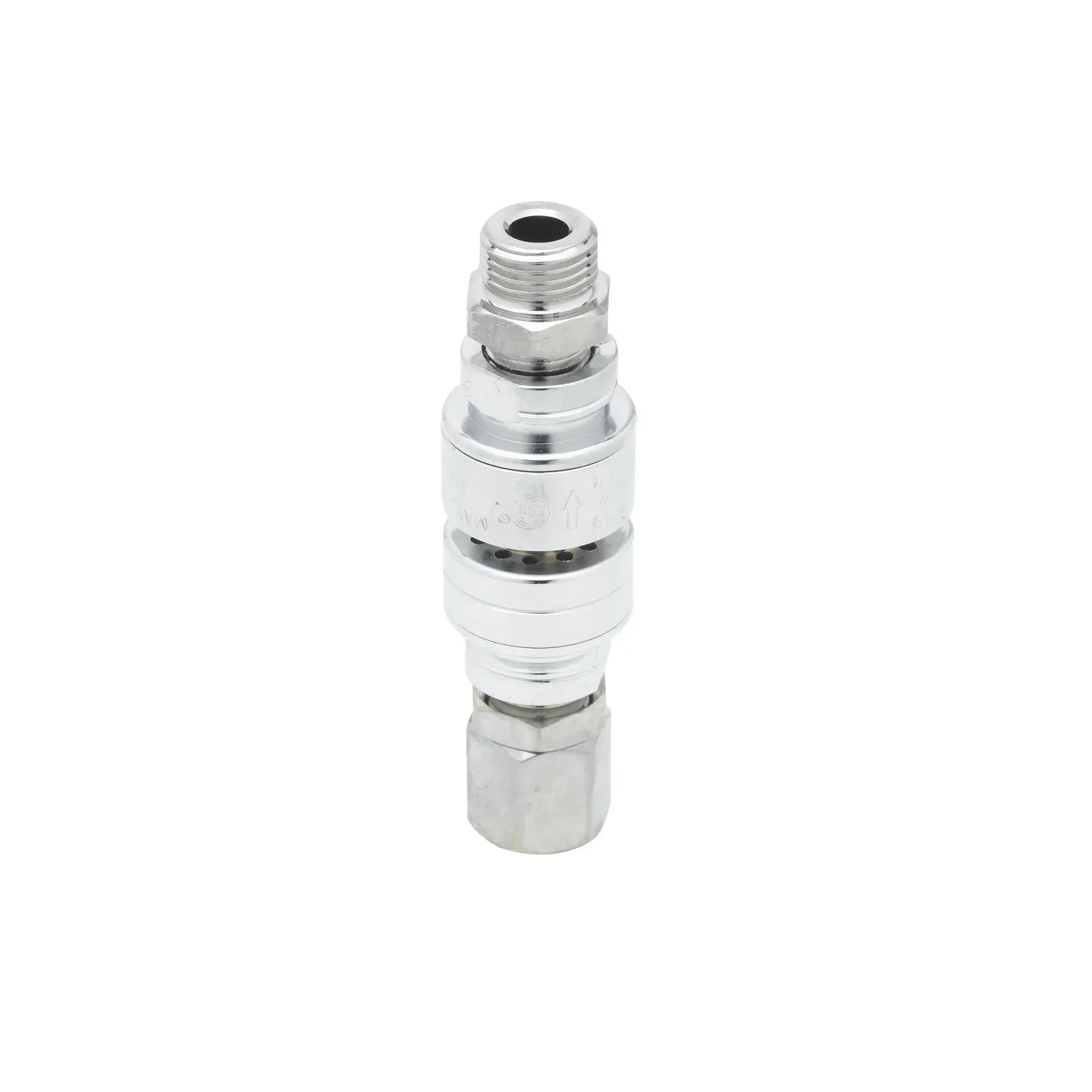 Secure Equipment Reliability with the T&S Brass B-0970-01 Vacuum Breaker Assembly. Designed specifically for commercial restaurant use, this vacuum breaker assembly ensures the safety and reliability of your equipment. With its in-line 3/8" continuous pressure vacuum breaker and polished chrome plated brass body, it provides superior protection against backflow and contamination. The coupling nut with a 3/4-14 UN female inlet and adapter with a 3/4-14 UN male outlet make installation quick and easy. Trust T&S Brass for quality and dependability in every product. Upgrade your restaurant's plumbing system with the T&S Brass B-0970-01 Vacuum Breaker Assembly.